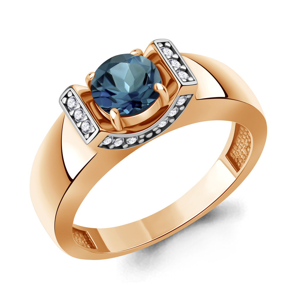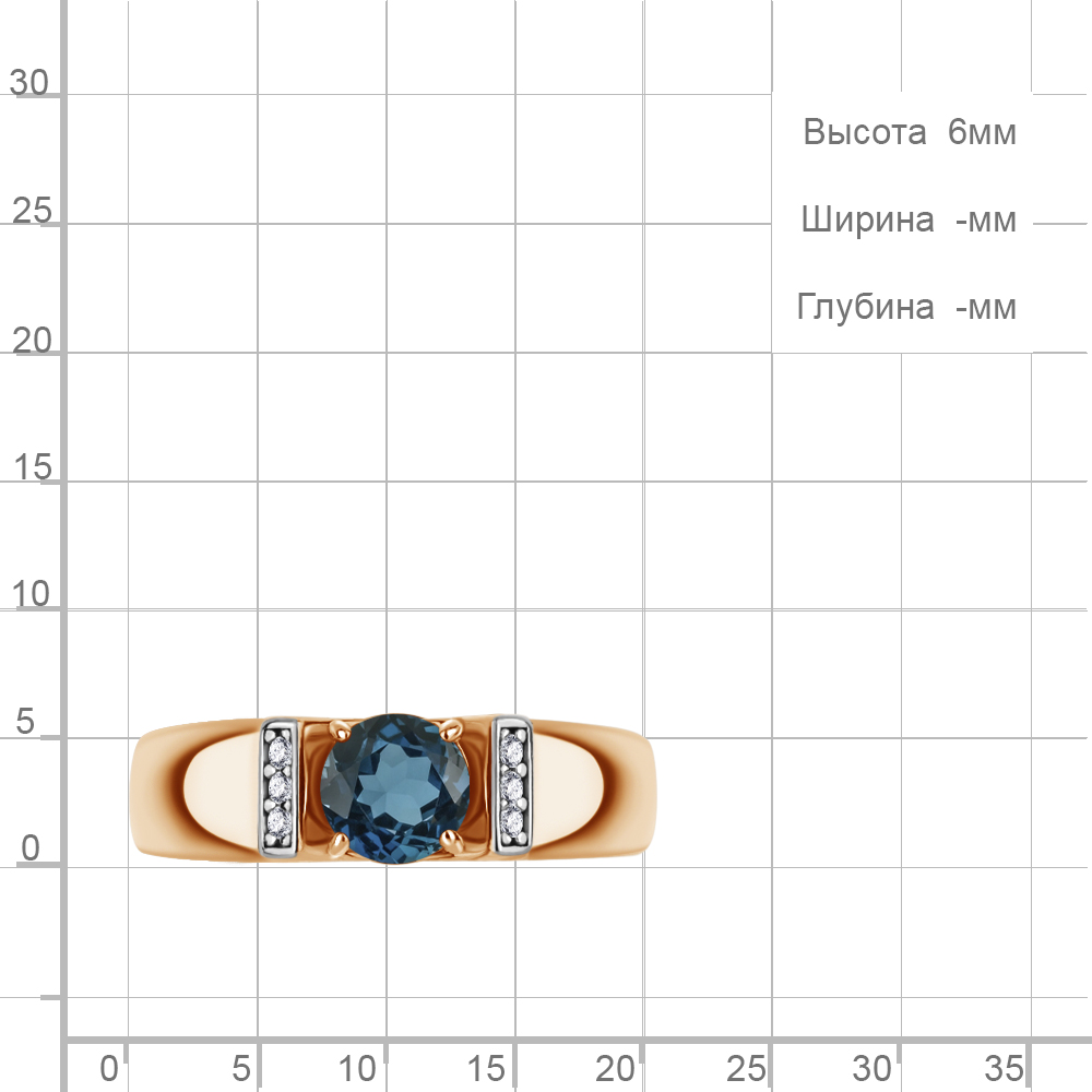 65013108А Кольцо из Серебра с топазом лондон блю, фианитами