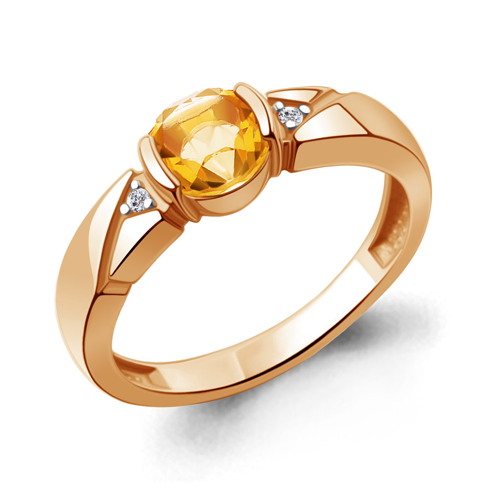 65013806А Кольцо из Серебра с фианитами, цитрином