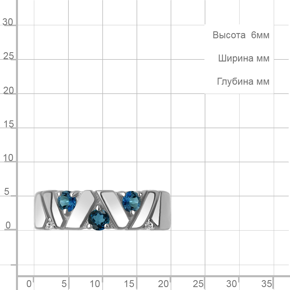 65014208А Кольцо из Серебра с топазами лондон блю, фианитами