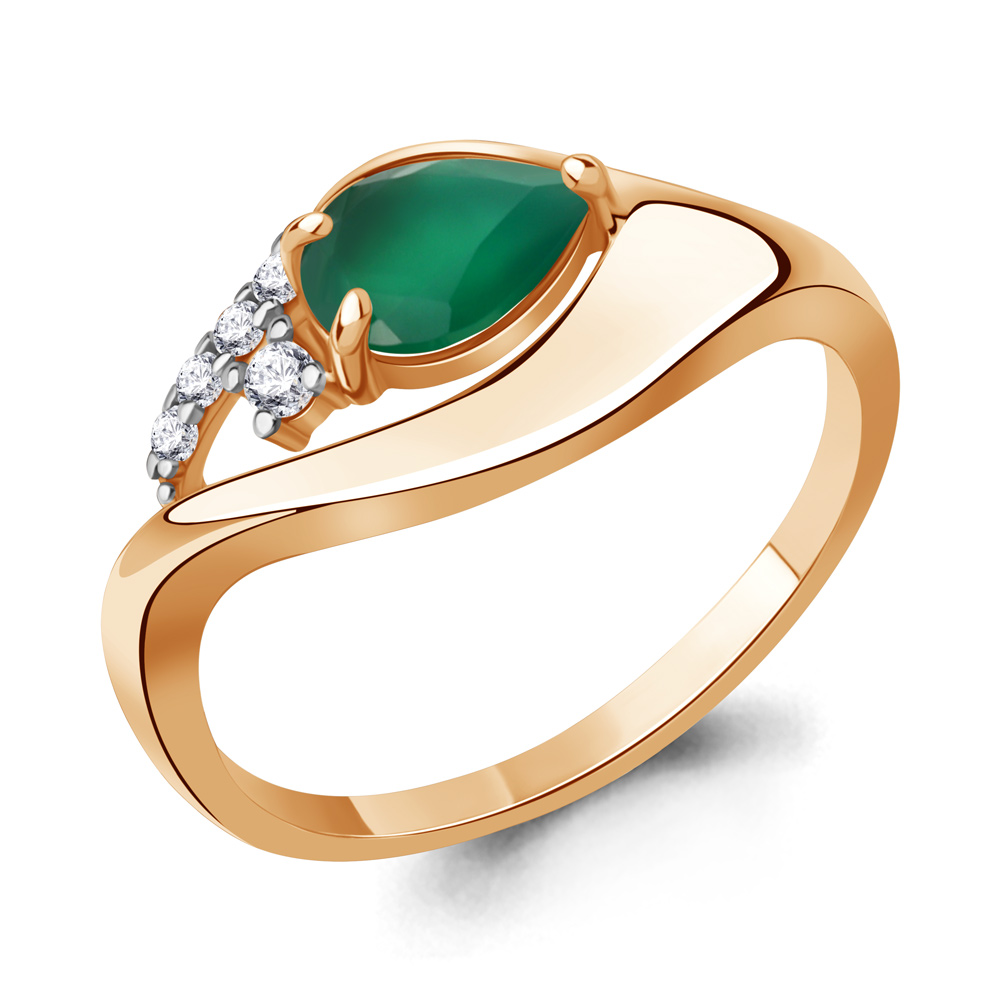 65015009А Кольцо из Серебра с агатом, фианитами