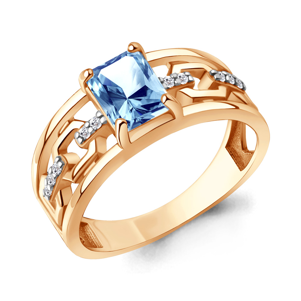 65015392А Кольцо из Серебра с нанотопазом свисс, фианитами