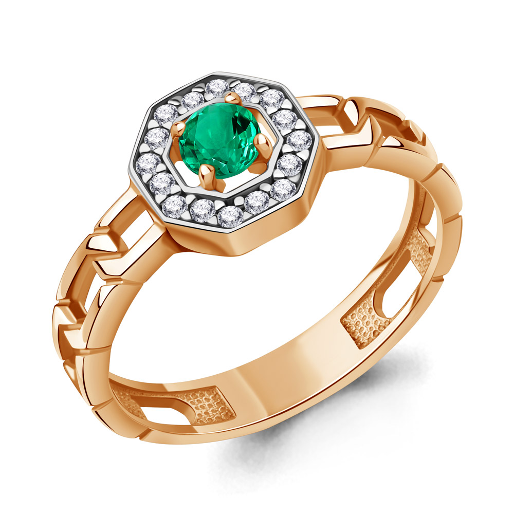 650178АГ Кольцо из Серебра с наноизумрудом, фианитами