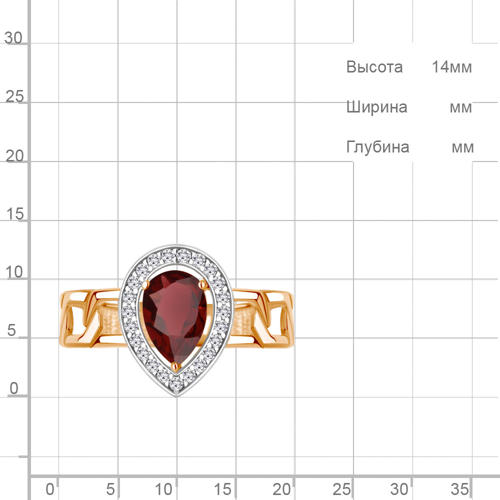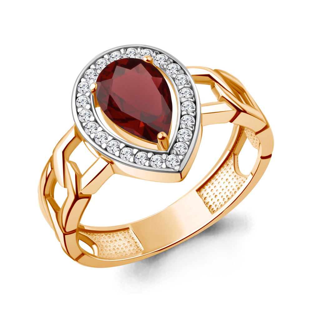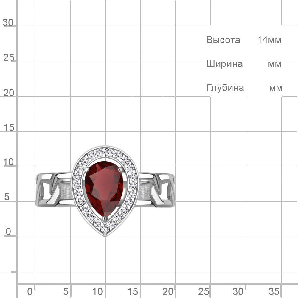 65017903А Кольцо из Серебра с гранатом, фианитами