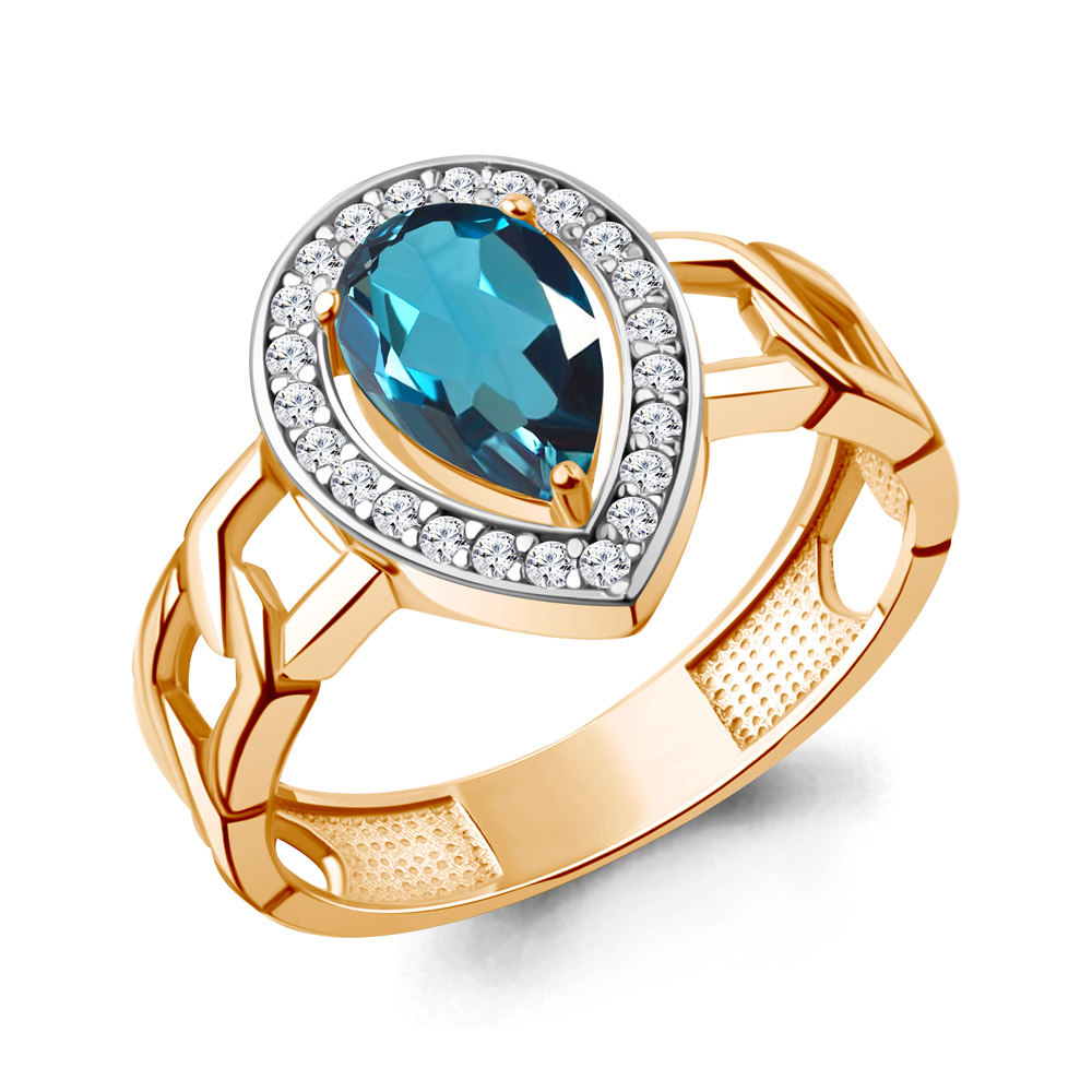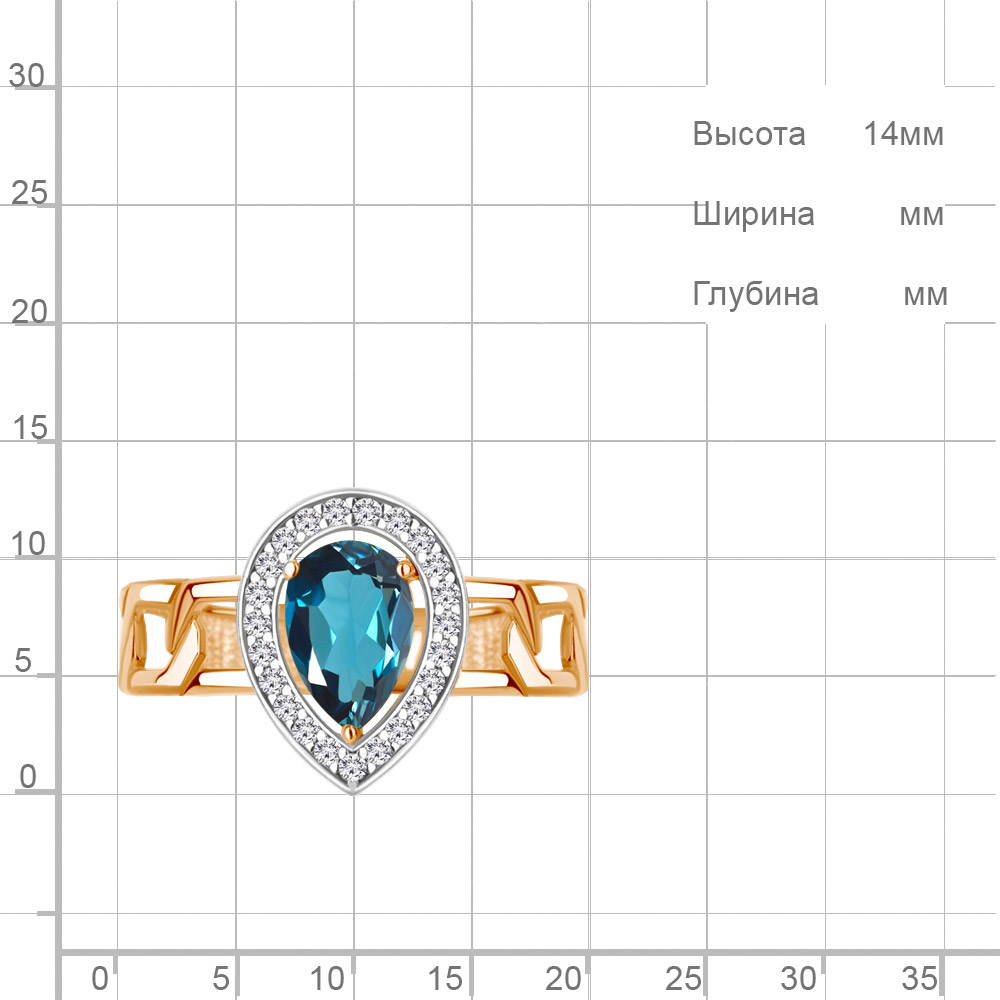 65017908А Кольцо из Серебра с топазом лондон блю, фианитами