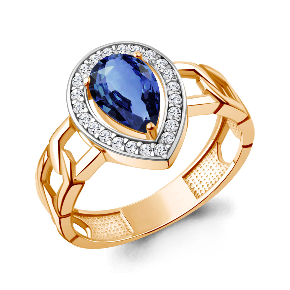 650179АБ Кольцо из Серебра с наносапфиром, фианитами