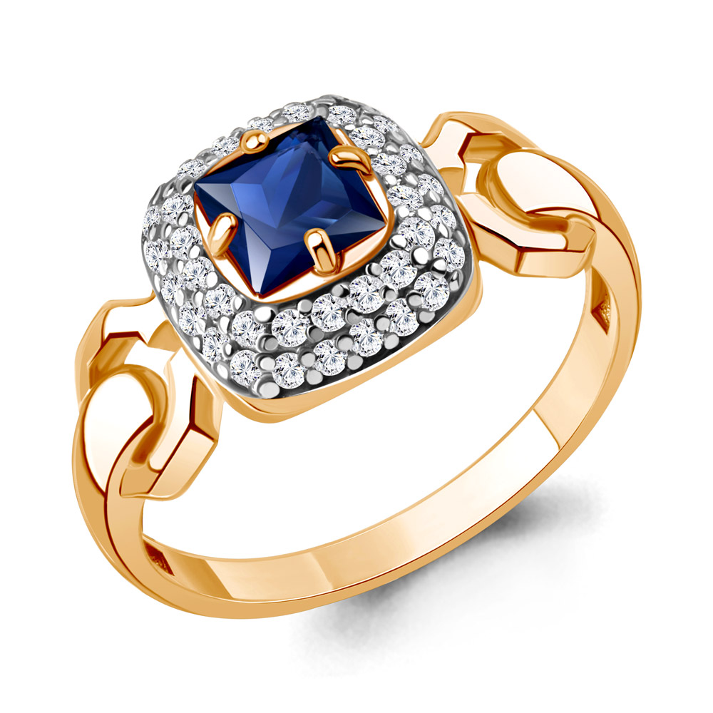 650184АБ Кольцо из Серебра с наносапфиром, фианитами