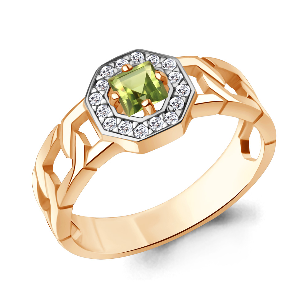 65018607А Кольцо из Серебра с фианитами, хризолитом