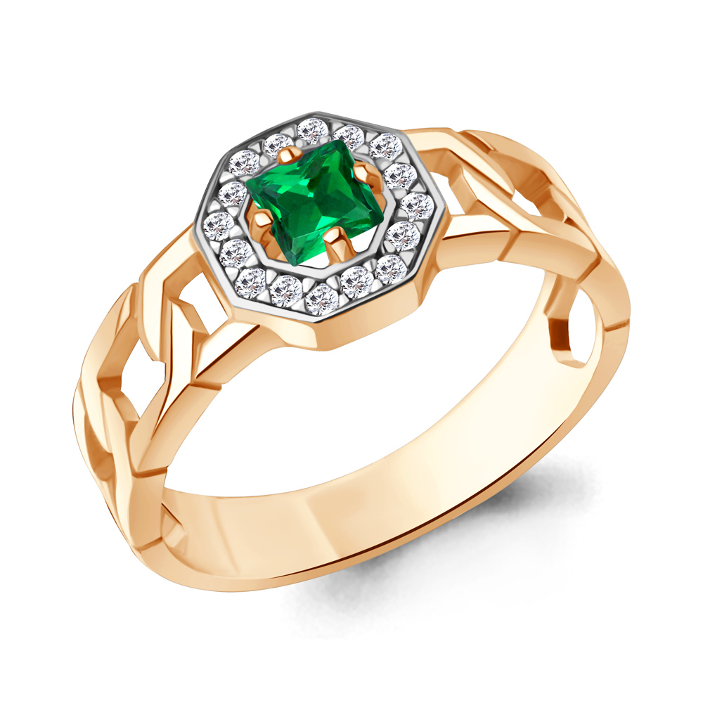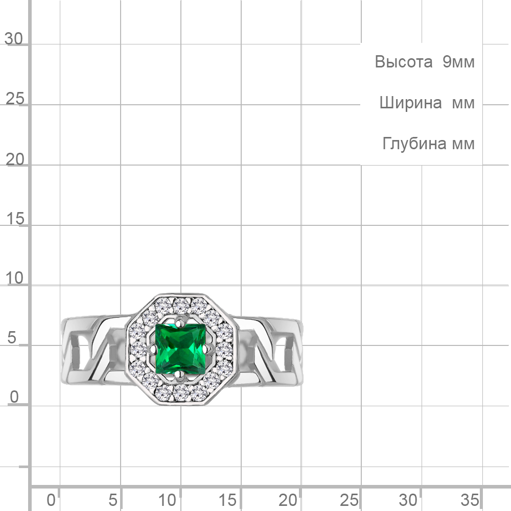 650186АГ Кольцо из Серебра с наноизумрудом, фианитами