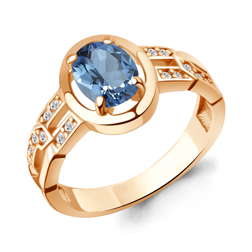 65018805А Кольцо из Серебра с топазом свисс блю, фианитами
