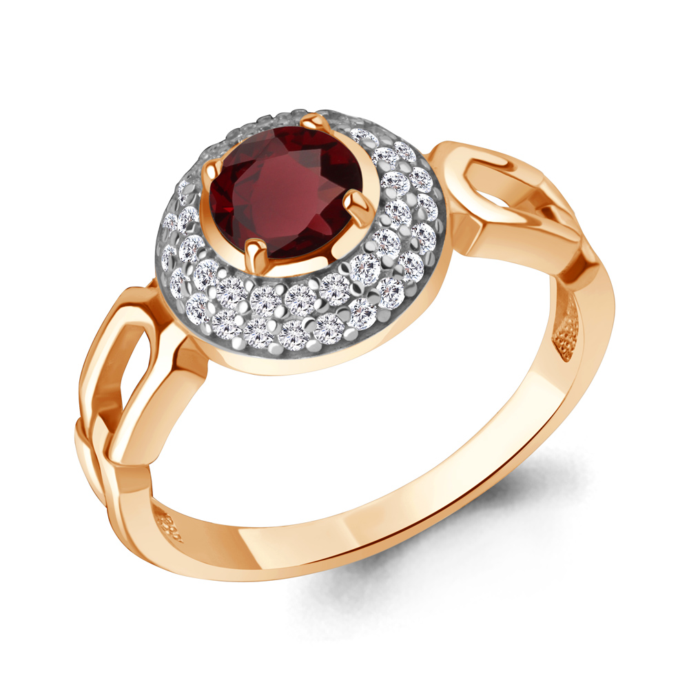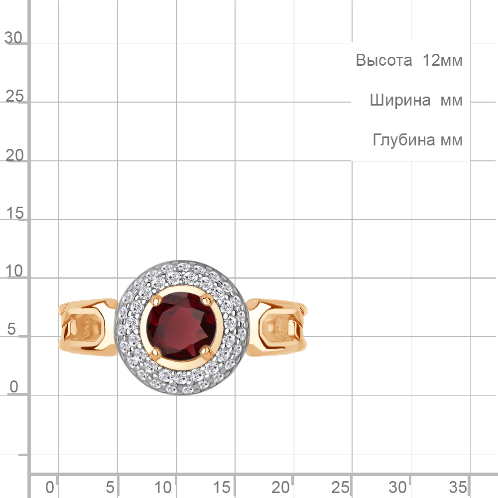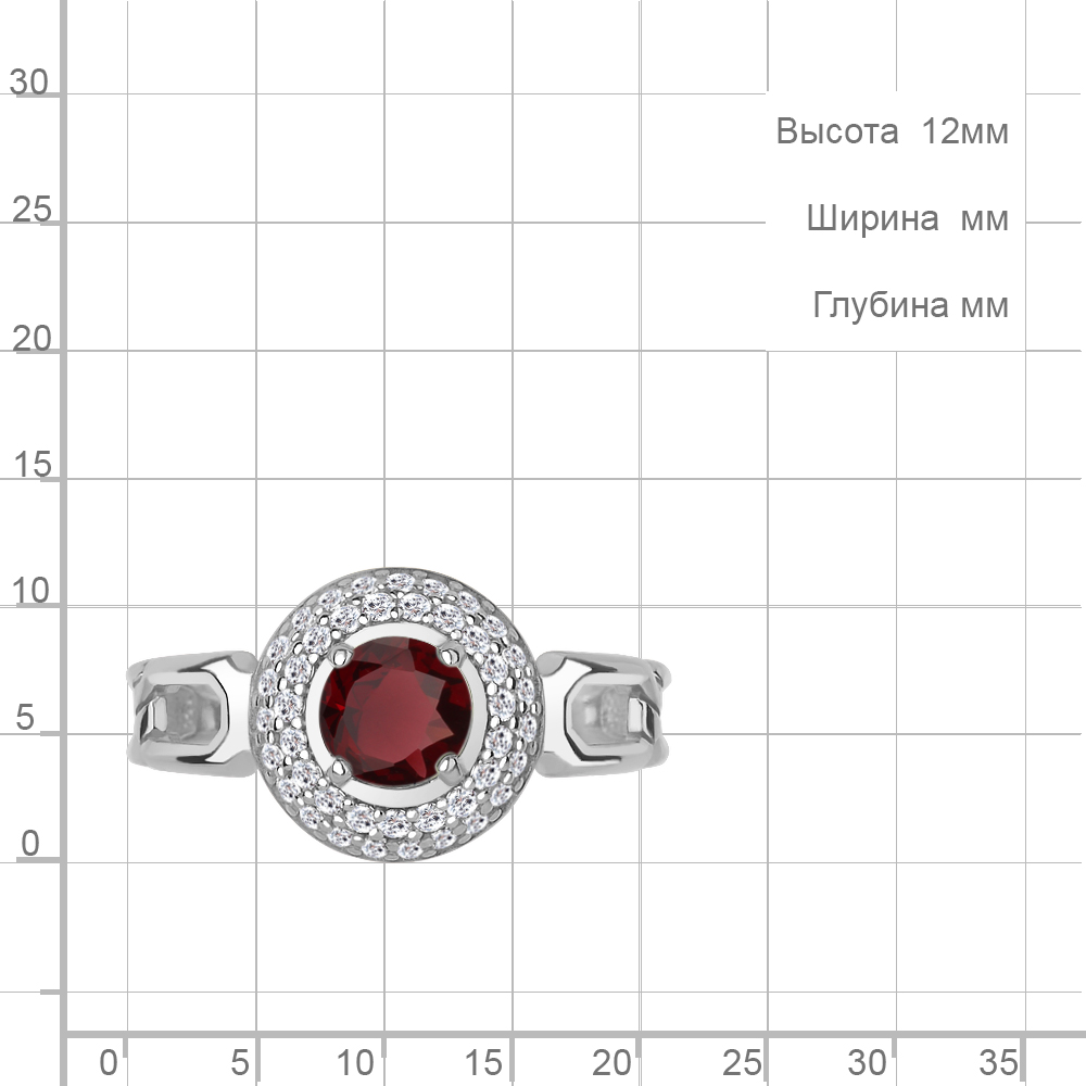 65019003А Кольцо из Серебра с гранатом, фианитами