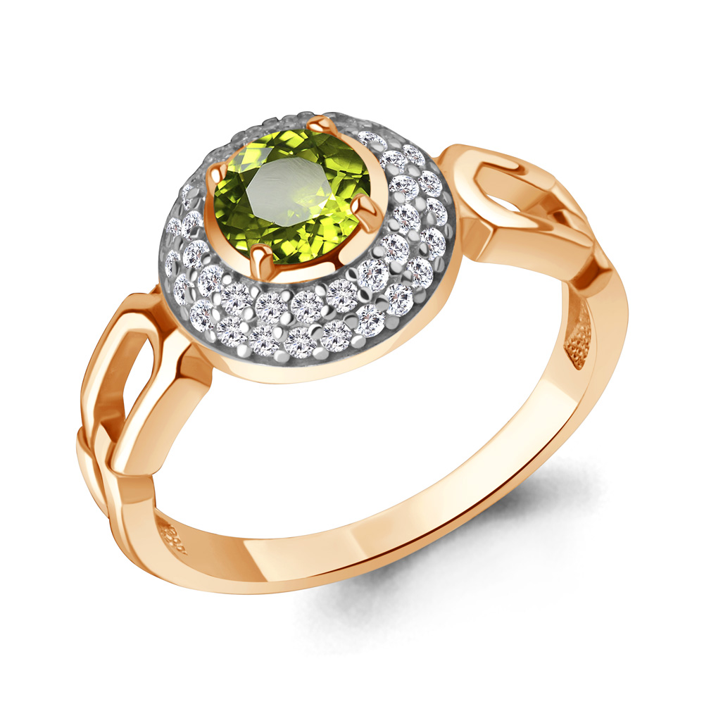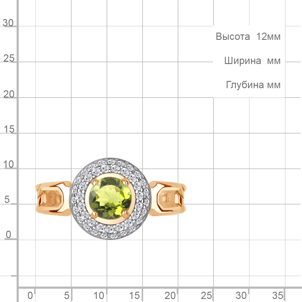 65019007А Кольцо из Серебра с фианитами, хризолитом