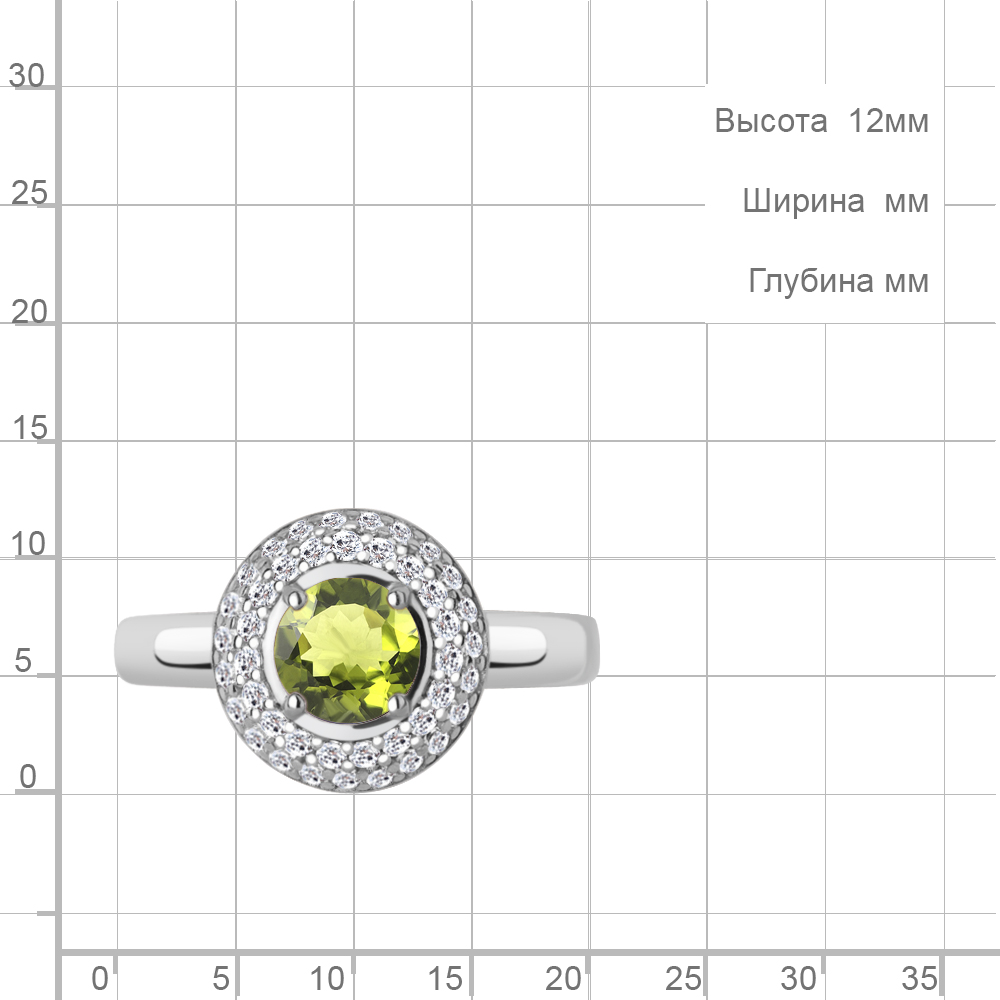 65019107А Кольцо из Серебра с фианитами, хризолитом
