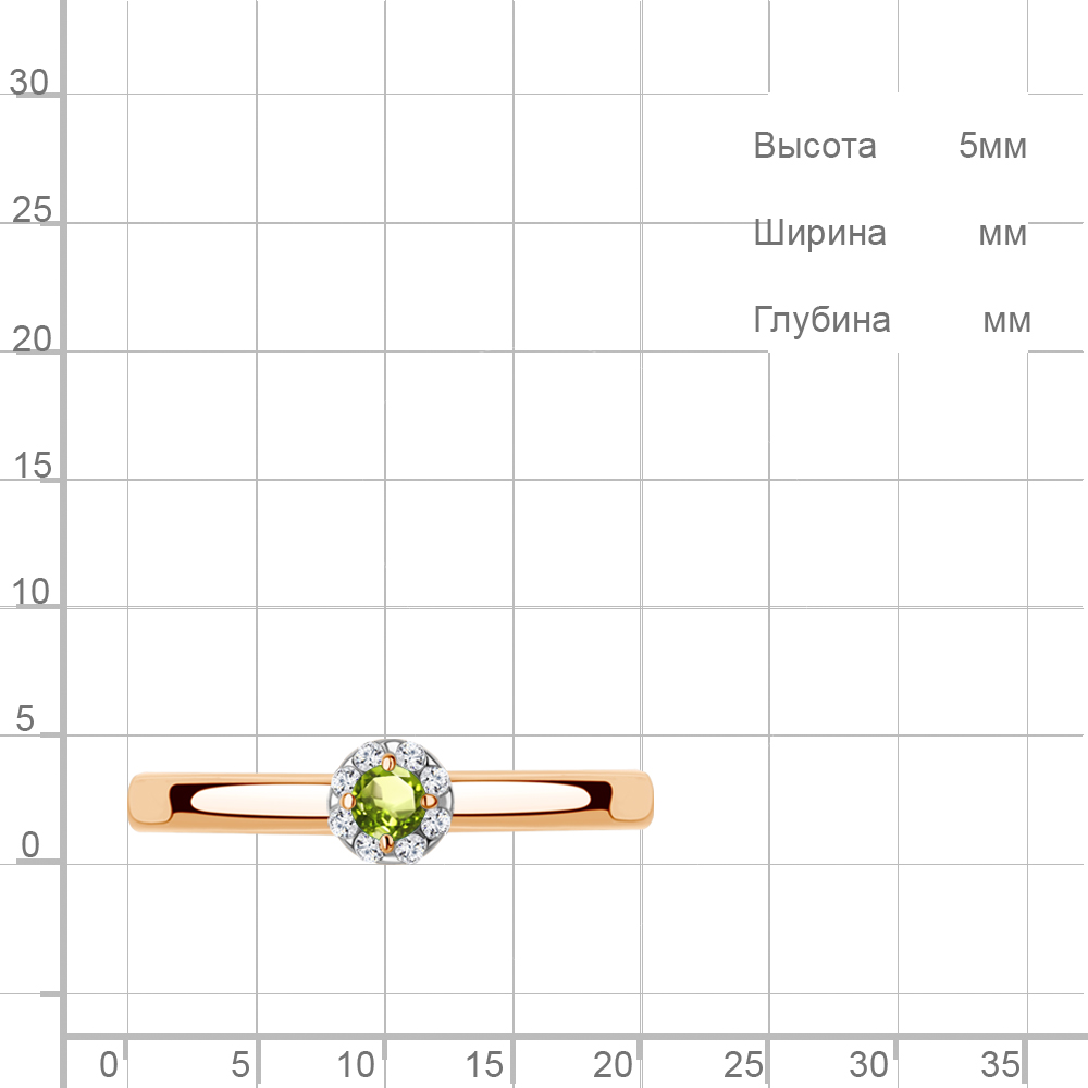 65019507А Кольцо из Серебра с фианитами, хризолитом