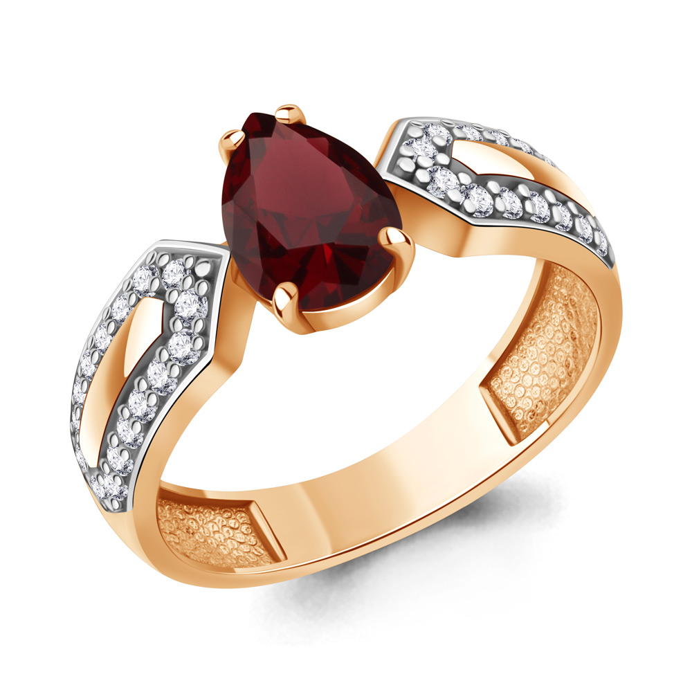 65021503А Кольцо из Серебра с гранатом, фианитами