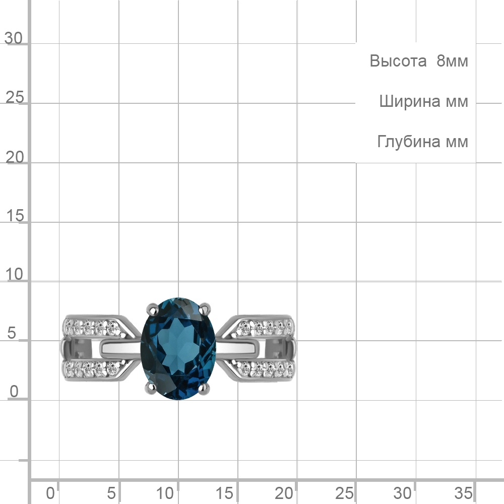 65022608А Кольцо из Серебра с топазом лондон блю, фианитами