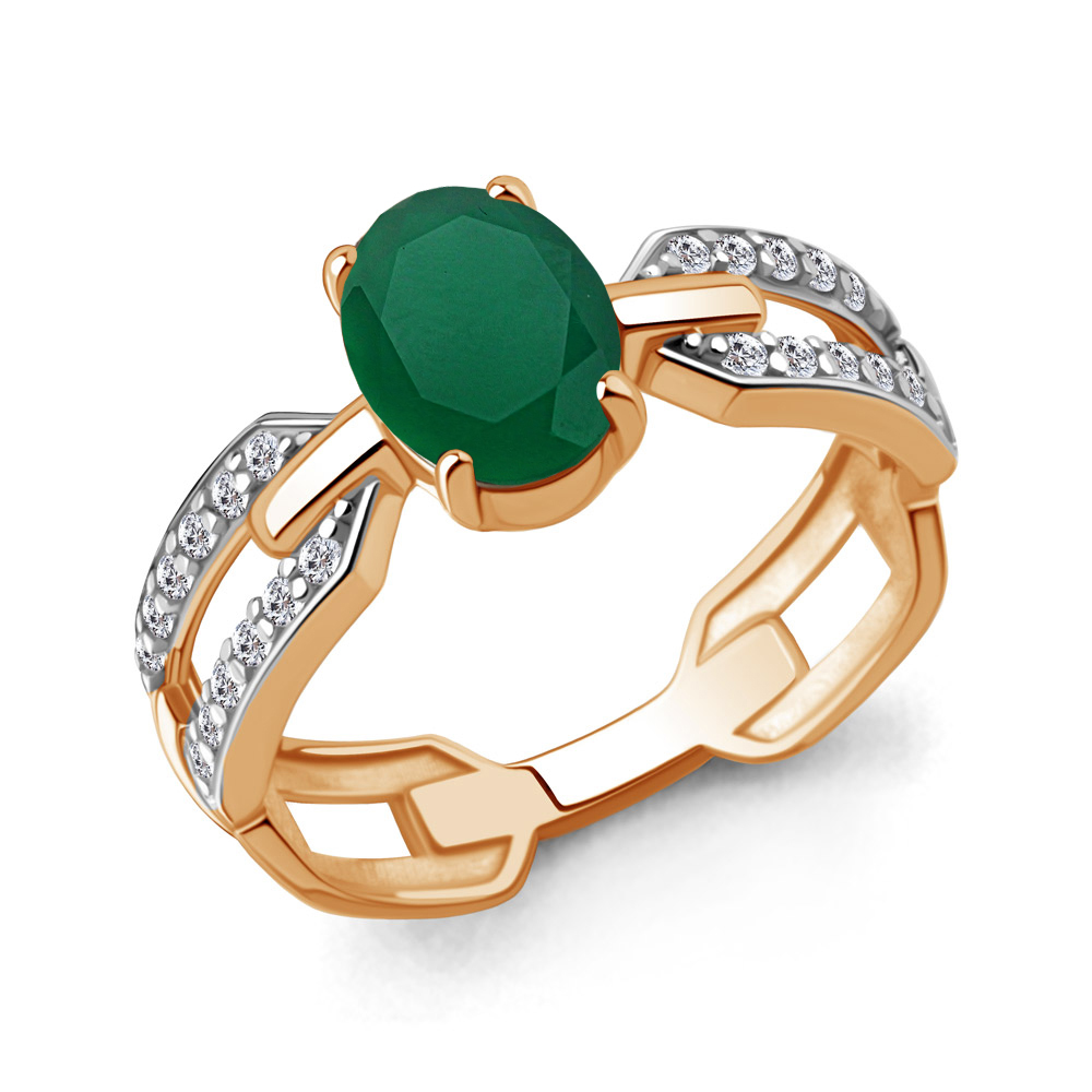 65022609А Кольцо из Серебра с агатом, фианитами