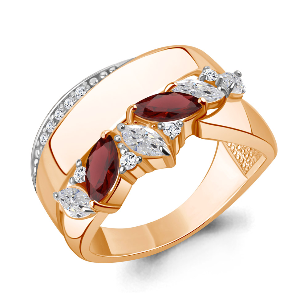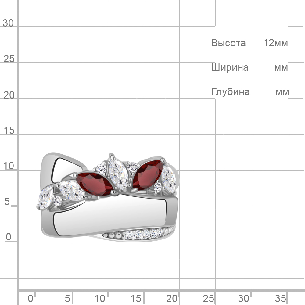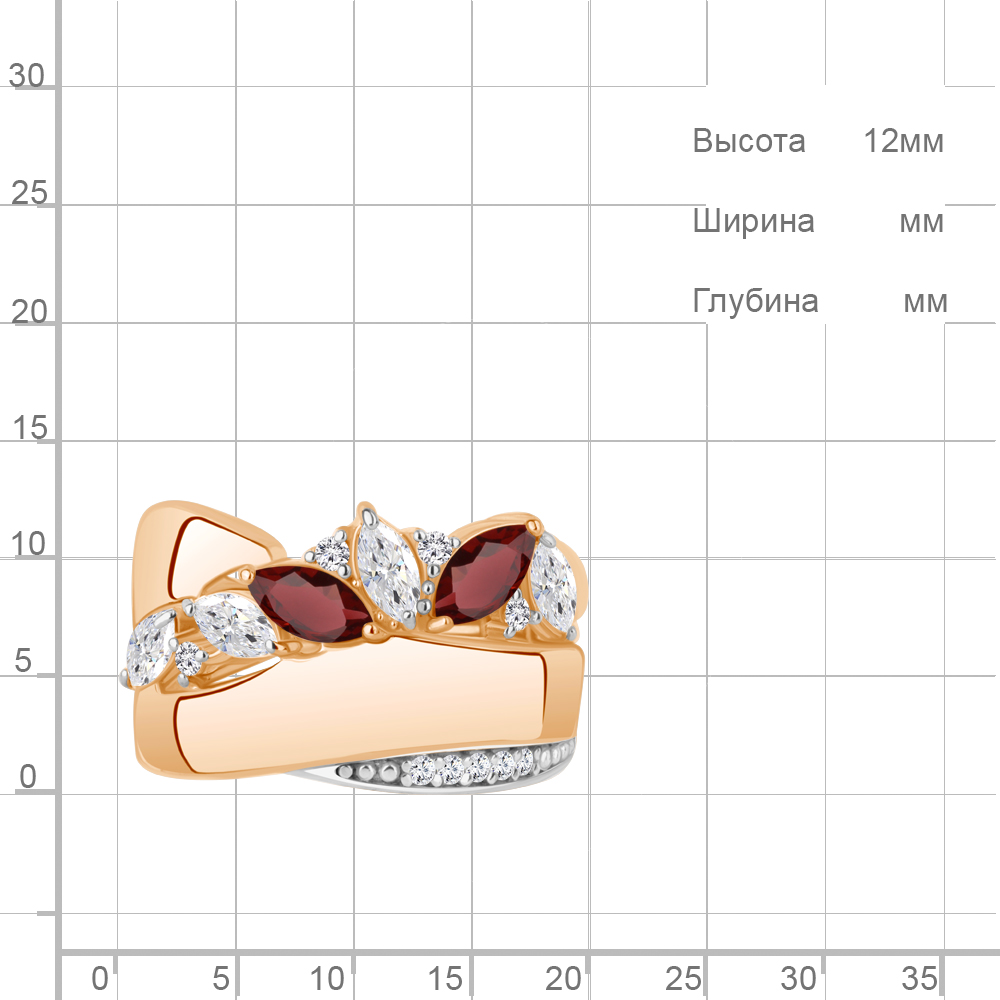 65022703А Кольцо из Серебра с гранатами, фианитами
