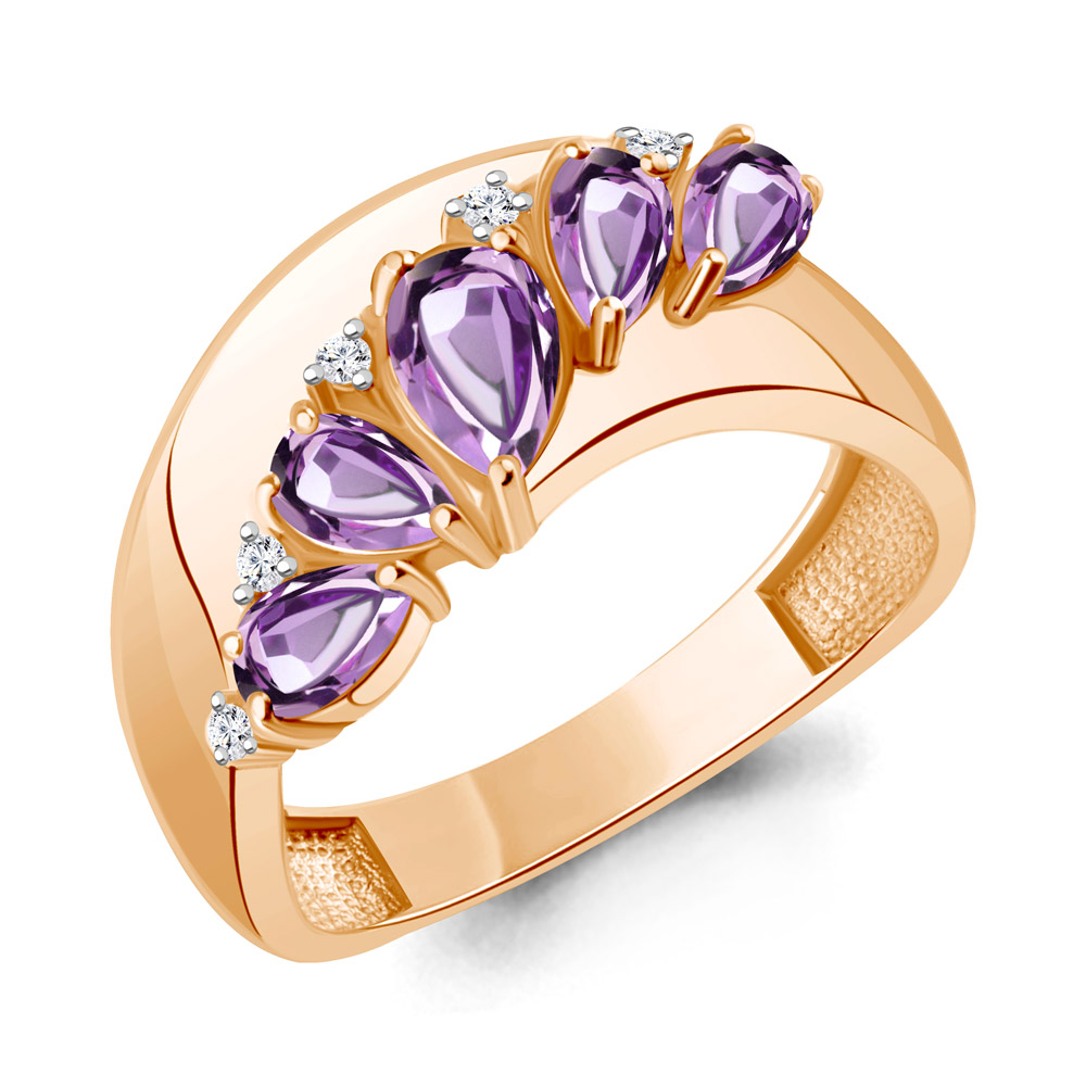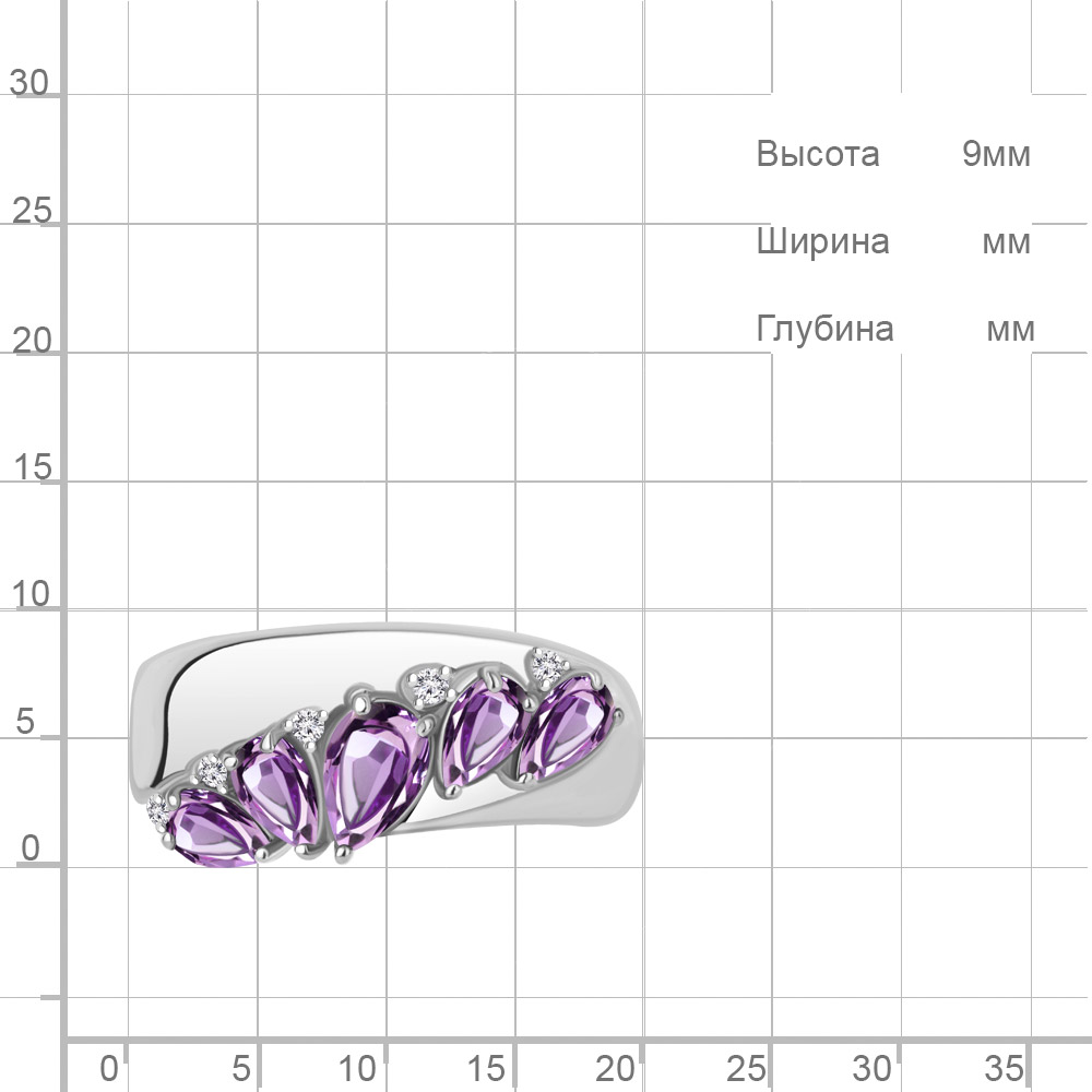 65024204А Кольцо из Серебра с аметистами, фианитами