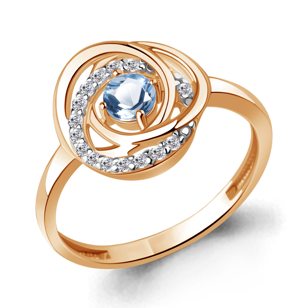 65024405А Кольцо из Серебра с топазом свисс блю, фианитами