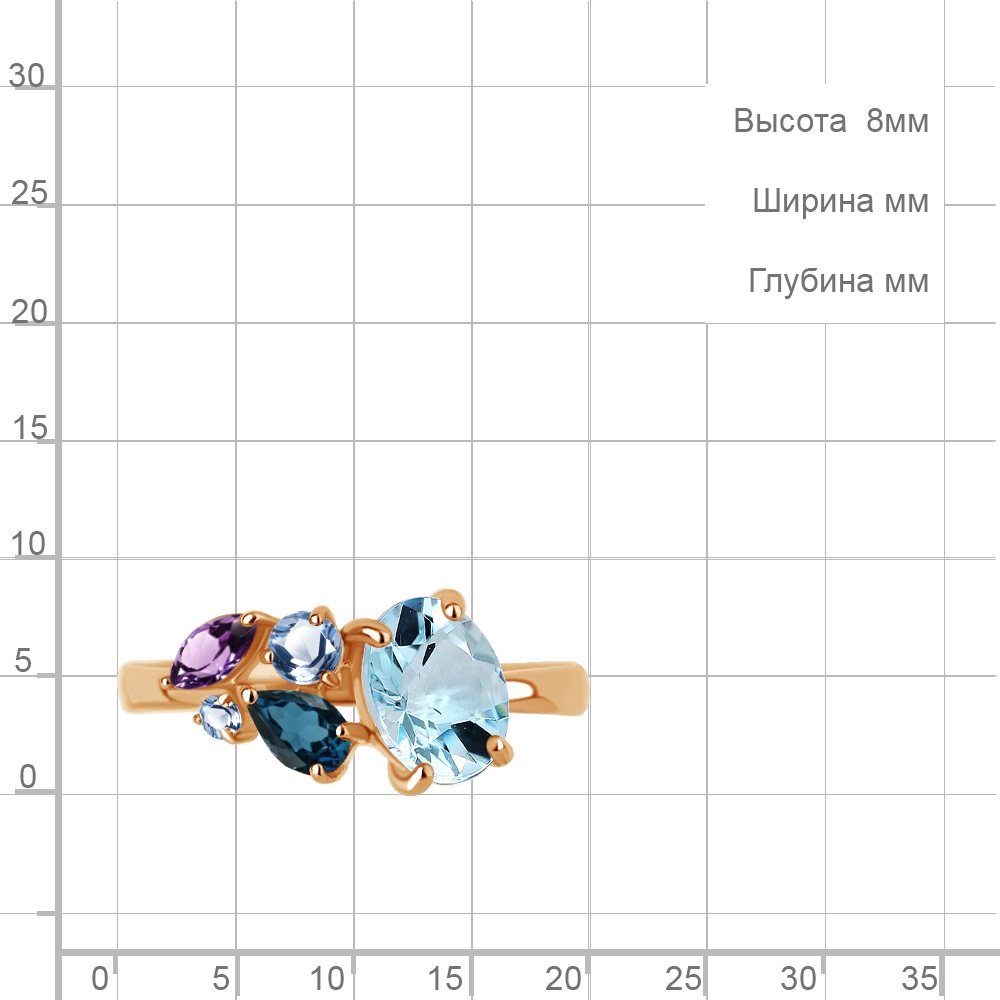 Описание камней 1 Аметист; 1 Топаз Скай Блю; 1 Топаз Свисс Блю; 1 Топаз Свисс Блю; 1 Топаз Лондон Блю