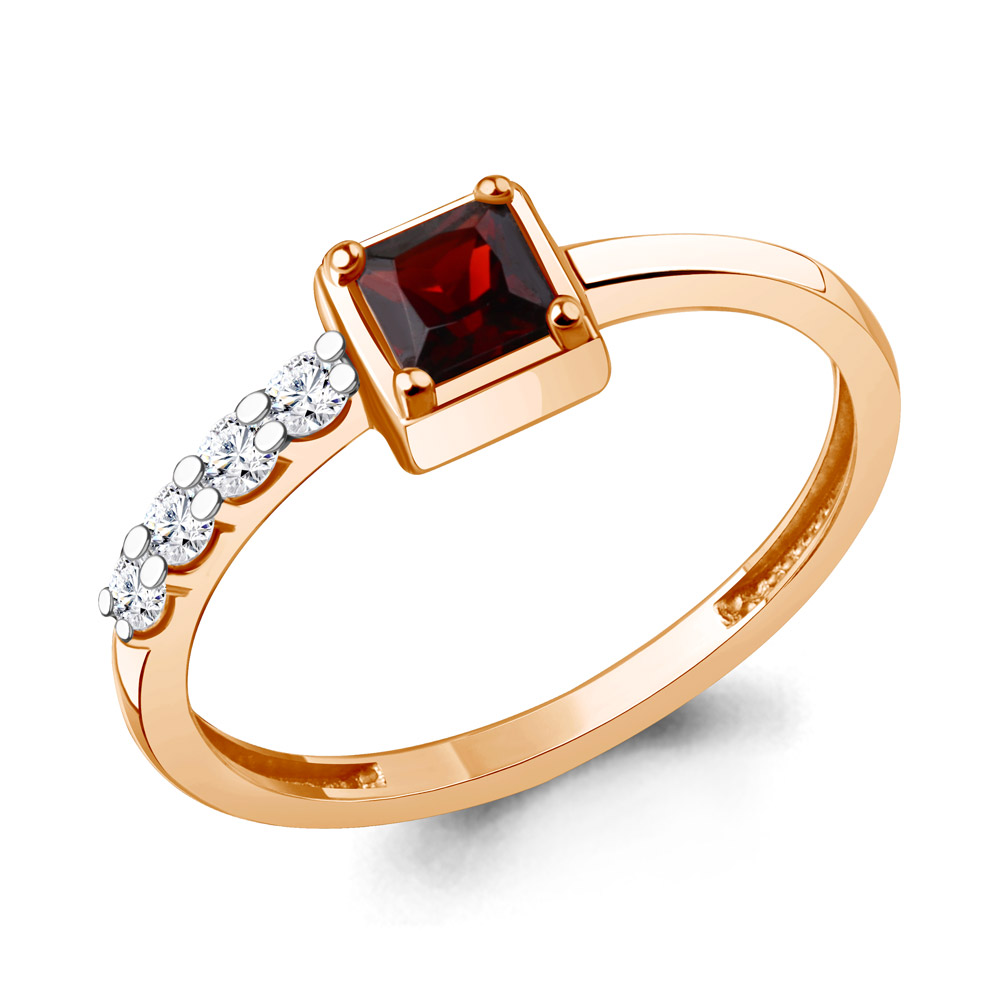 65028803А Кольцо из Серебра с гранатом, фианитами