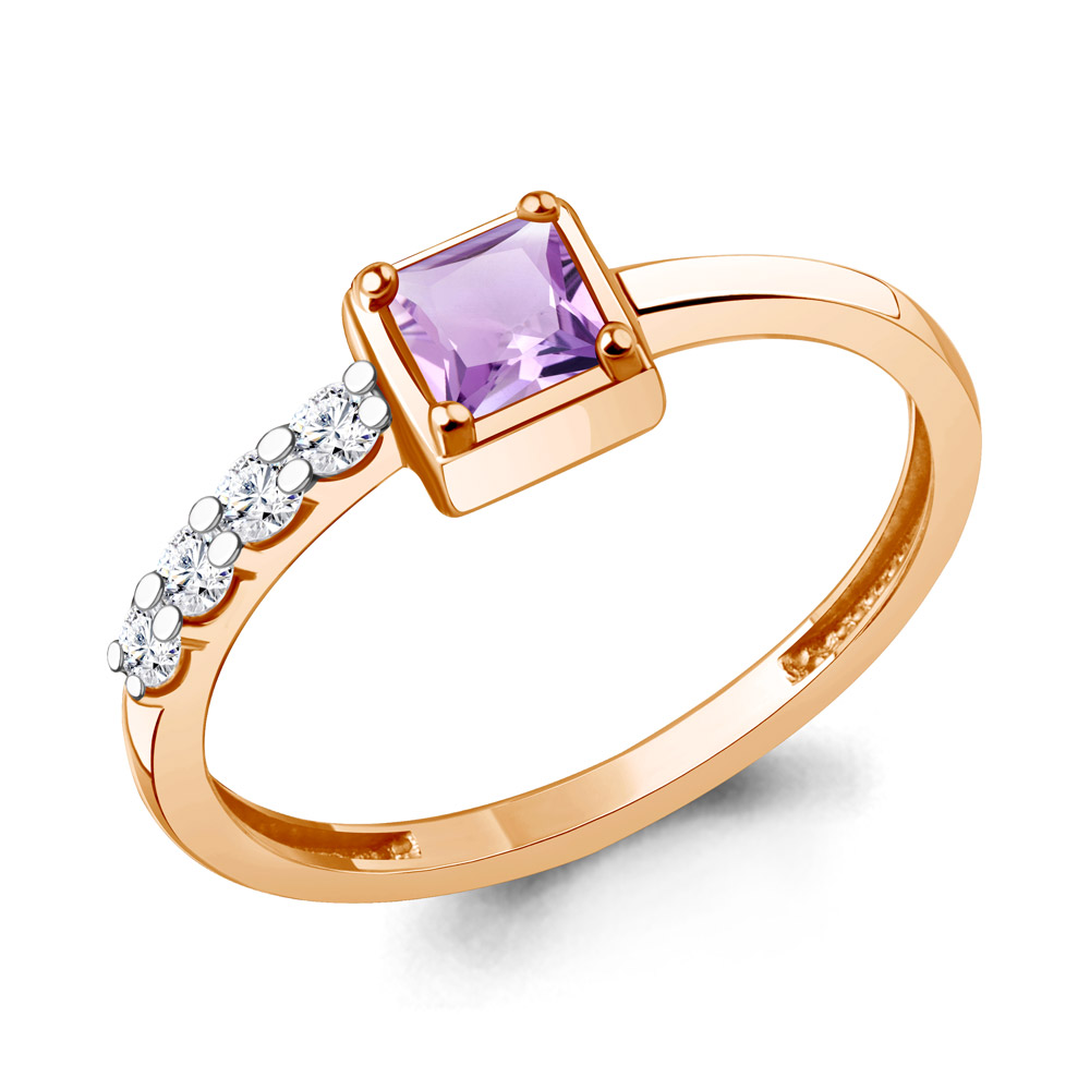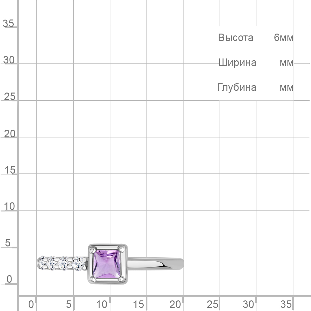 65028804А Кольцо из Серебра с аметистом, фианитами