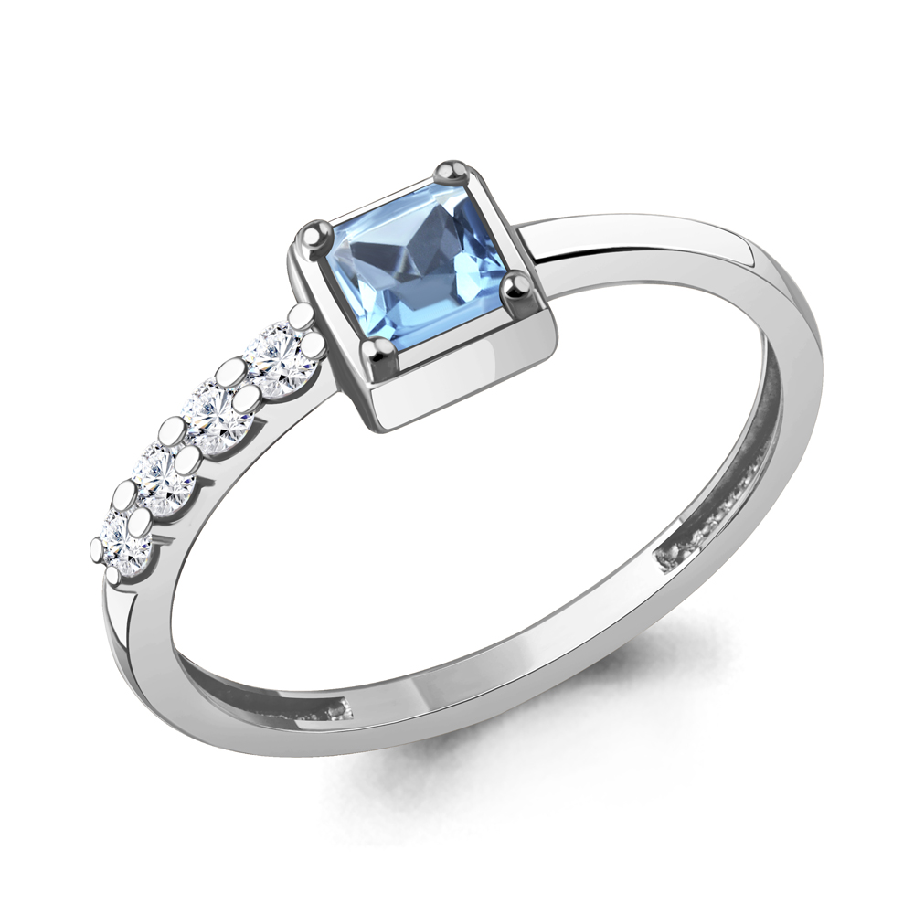 65028805А Кольцо из Золота с топазом свисс блю, фианитами