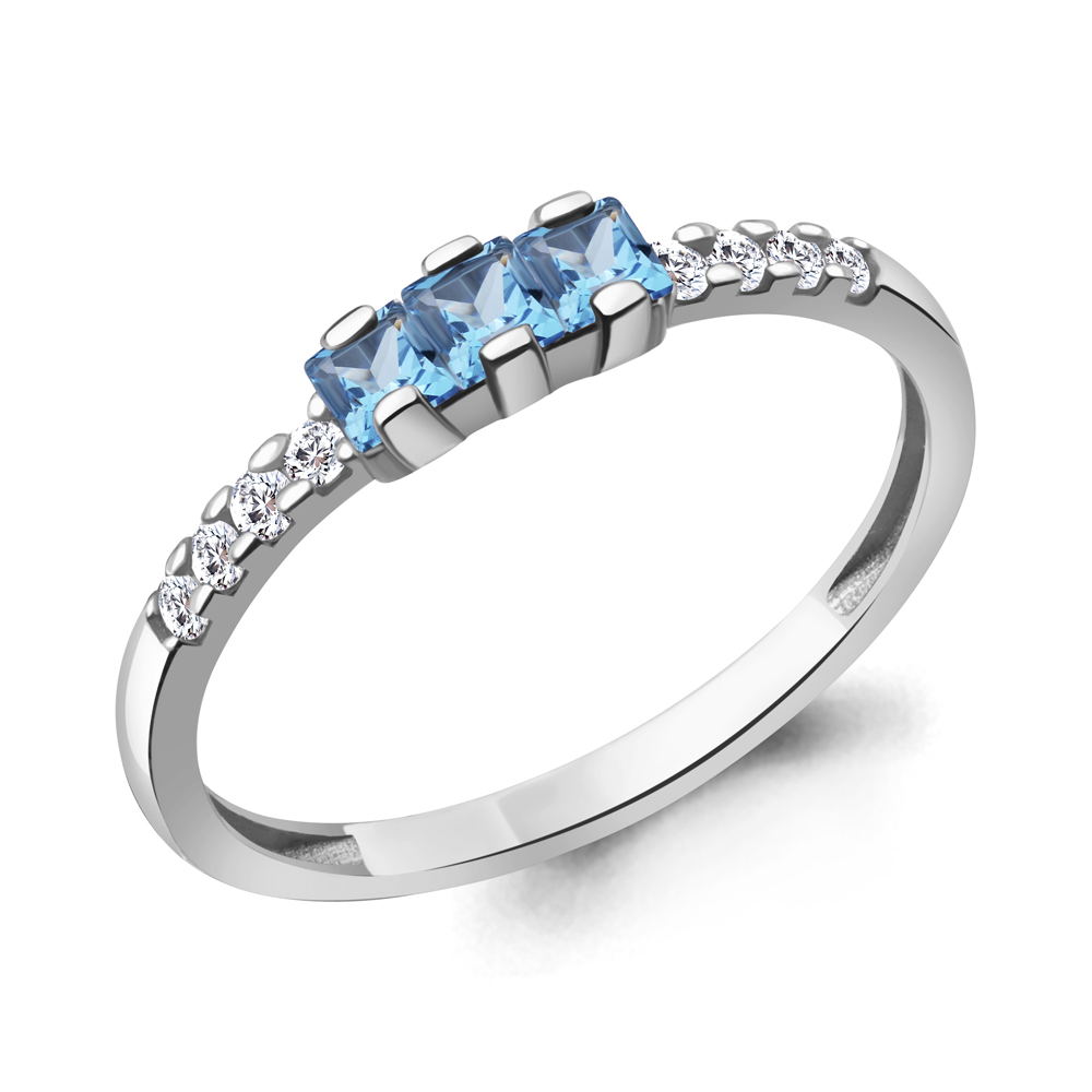 65029905А Кольцо из Золота с топазами свисс блю, фианитами