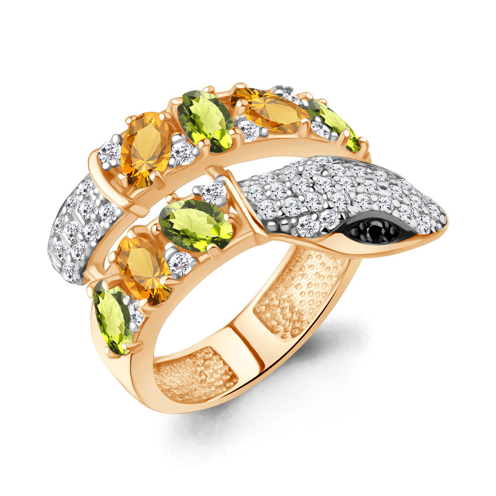 65030738АЧ Кольцо из Серебра с нанокристаллами, фианитами, хризолитами, цитринами