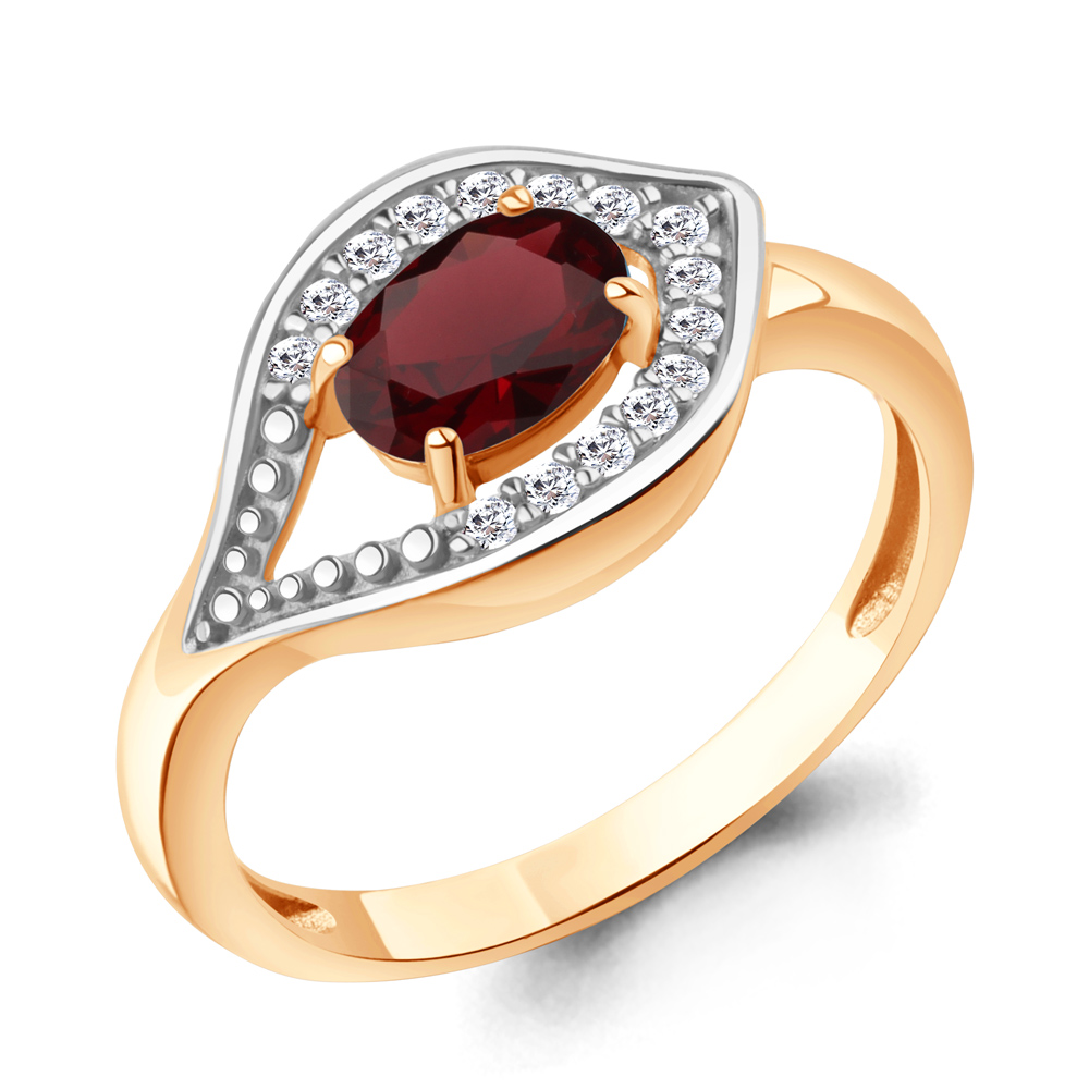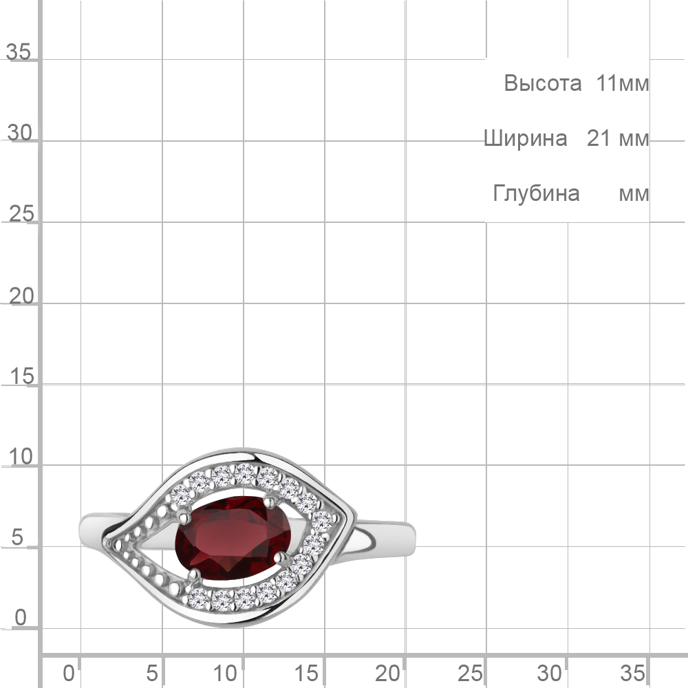 65032403А Кольцо из Серебра с гранатом, фианитами