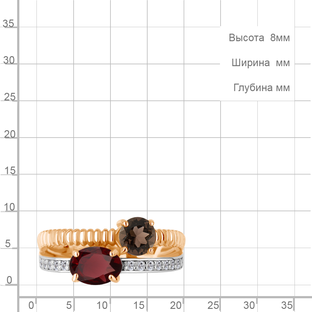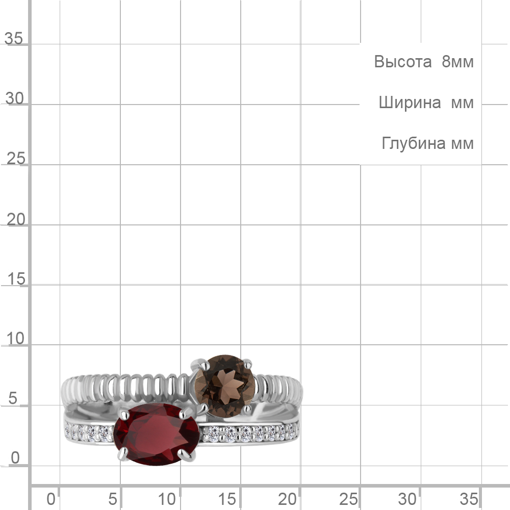 65032636А Кольцо из Серебра с гранатом, кварцем дымчатым, фианитами