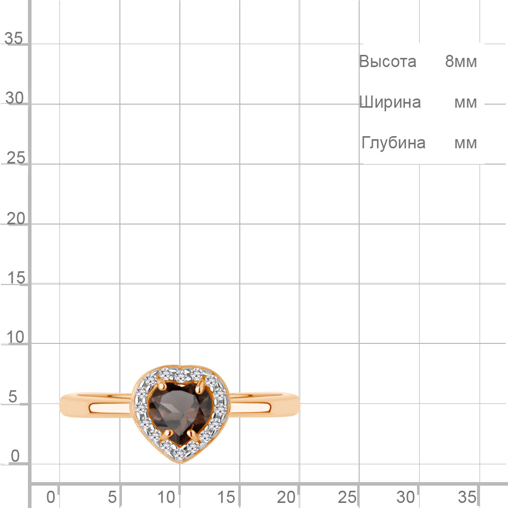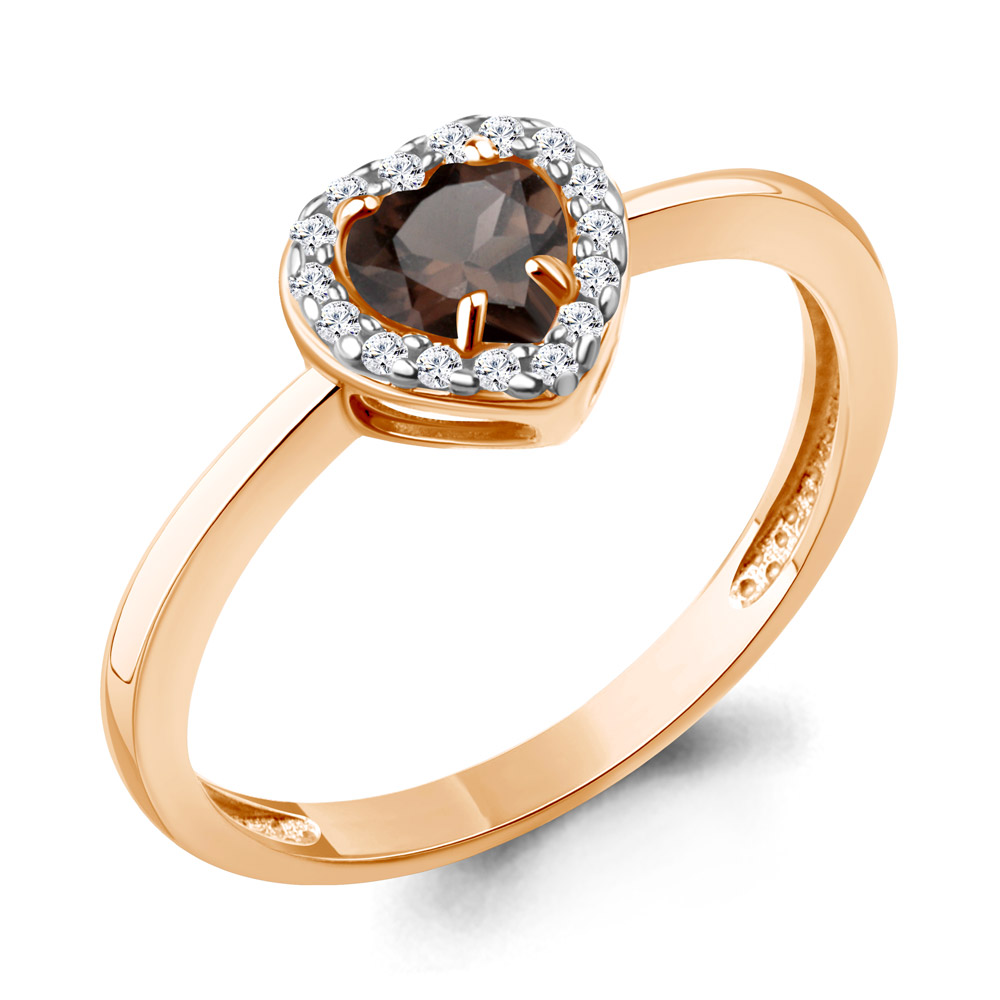 65032901А Кольцо из Серебра с кварцем дымчатым, фианитами