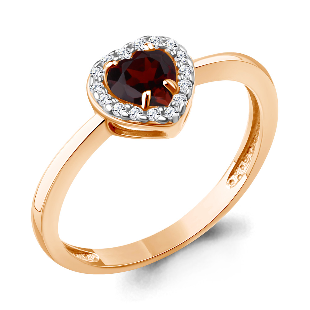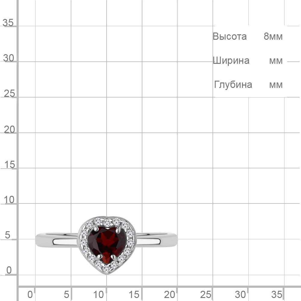 65032903А Кольцо из Серебра с гранатом, фианитами