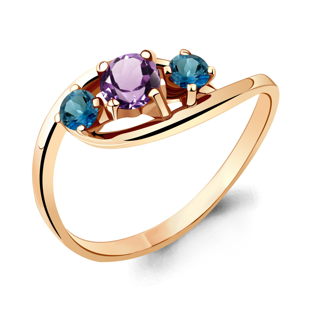 6509032 Кольцо из Серебра с аметистом, топазами лондон блю