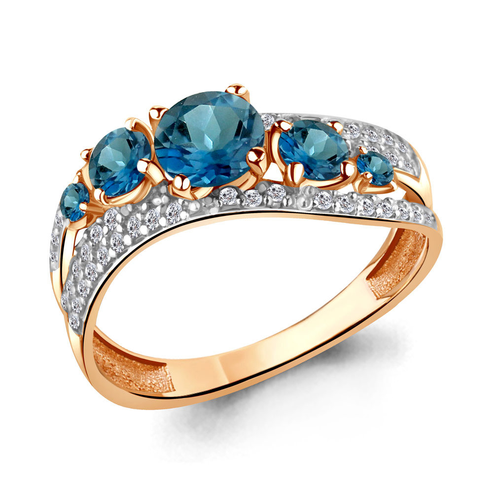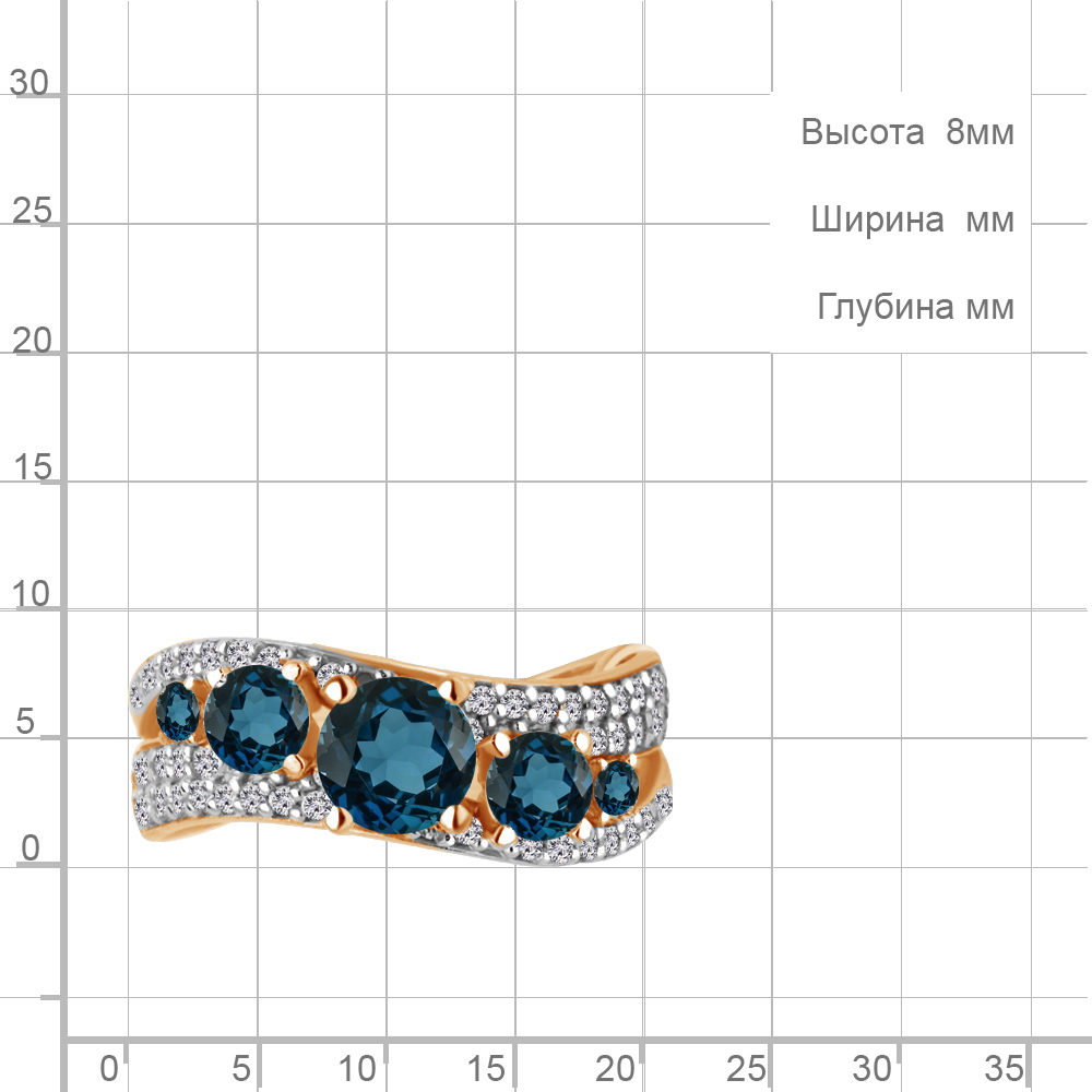 6509708А Кольцо из Серебра с топазами лондон блю, фианитами