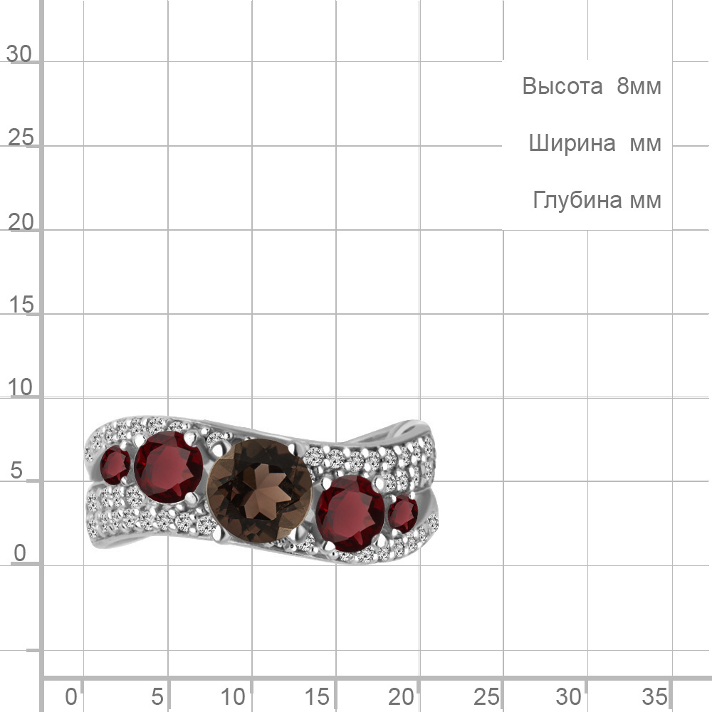 6509736А Кольцо из Серебра с гранатами, кварцем дымчатым, фианитами