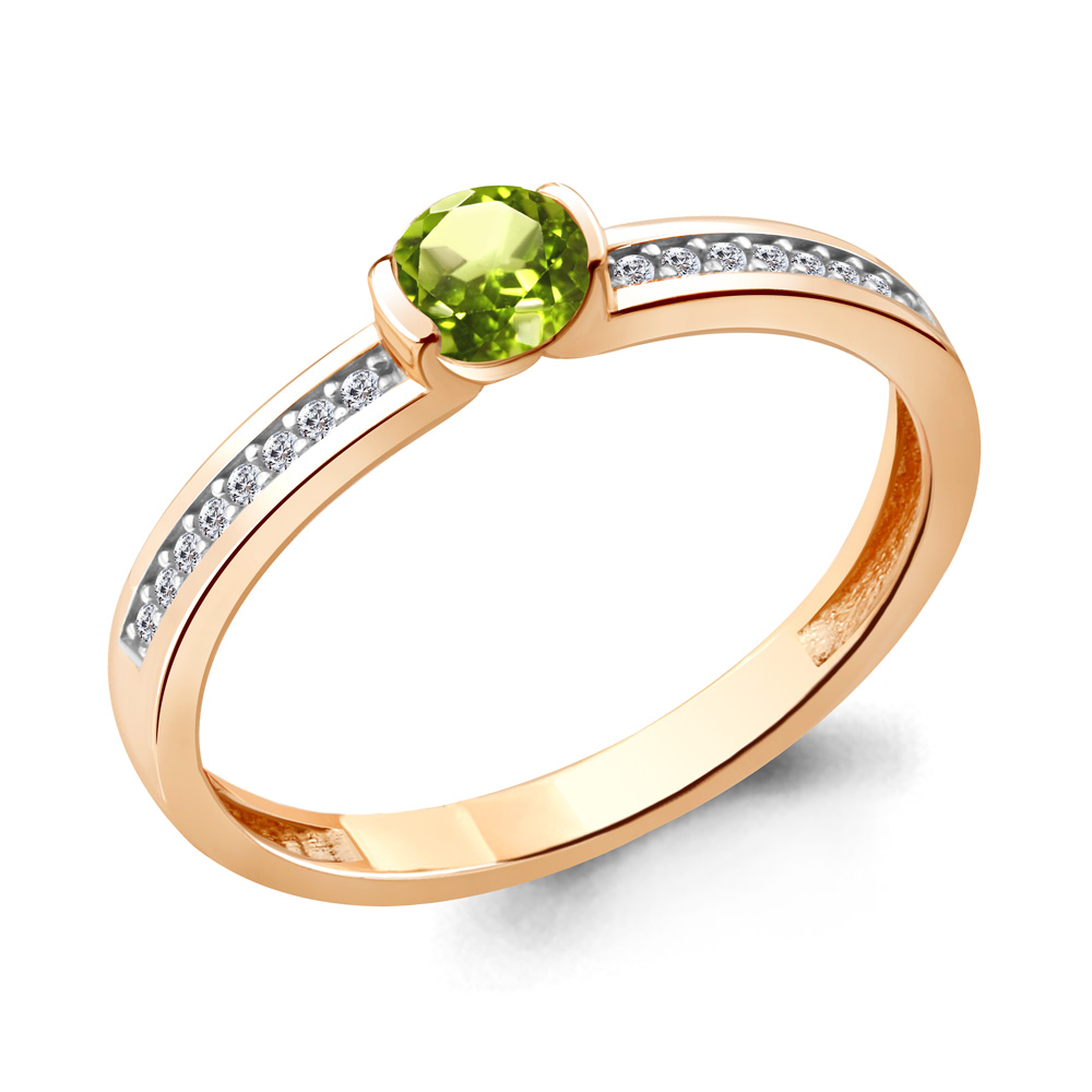 6519207А Кольцо из Серебра с фианитами, хризолитом
