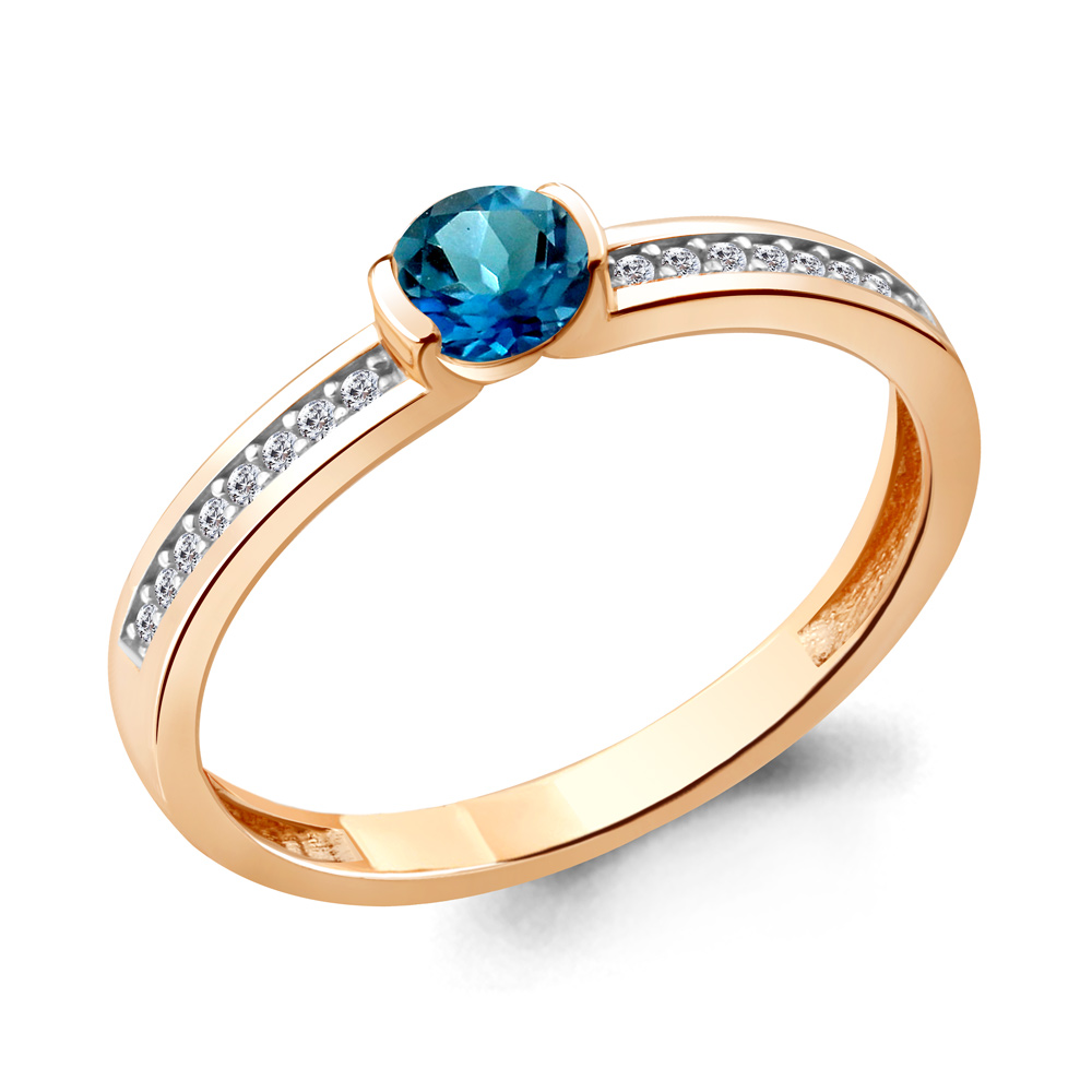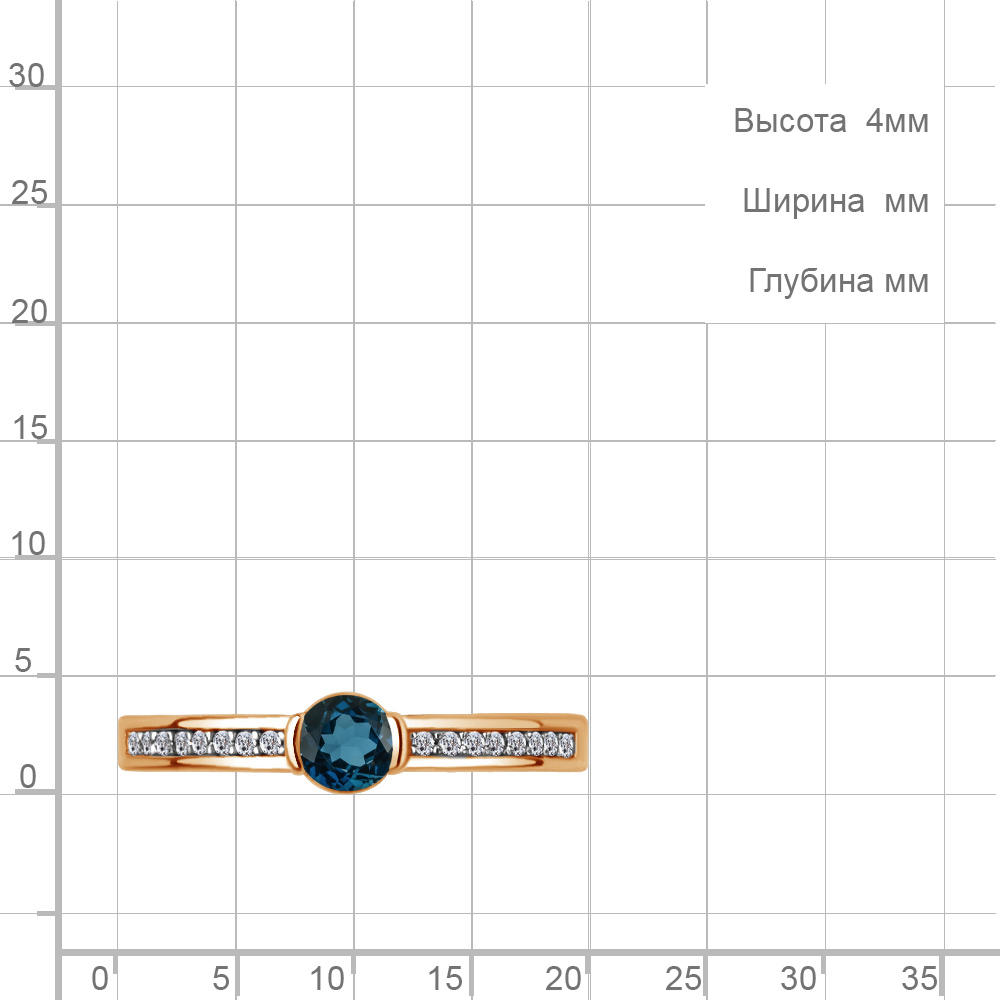 6519208А Кольцо из Серебра с топазом лондон блю, фианитами