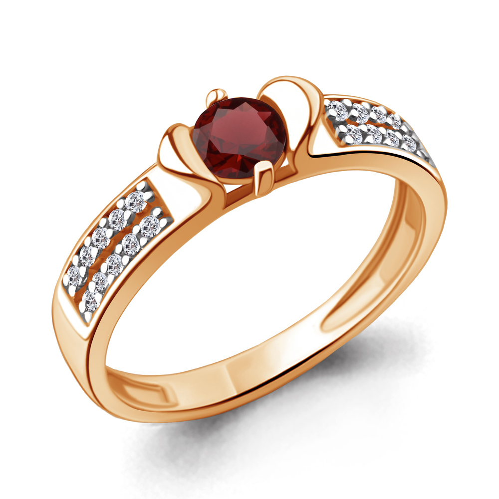6519503А Кольцо из Серебра с гранатом, фианитами