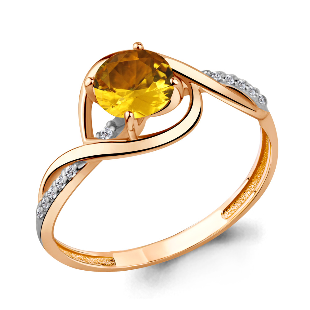 6520706А Кольцо из Серебра с фианитами, цитрином