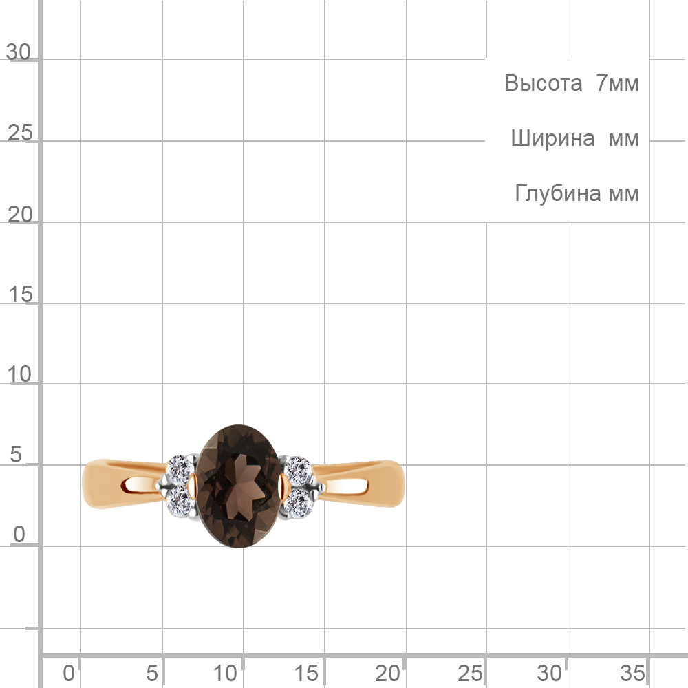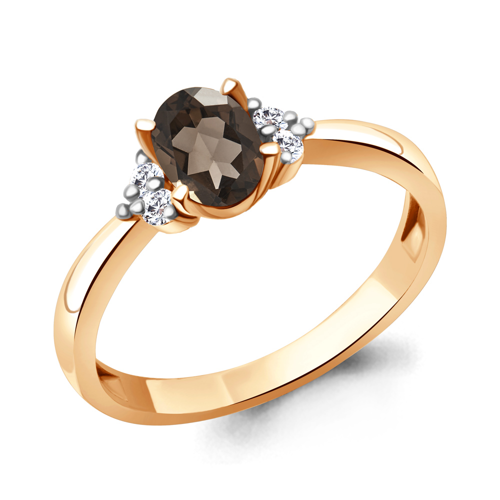 6523601 Кольцо из Серебра с кварцем дымчатым, фианитами