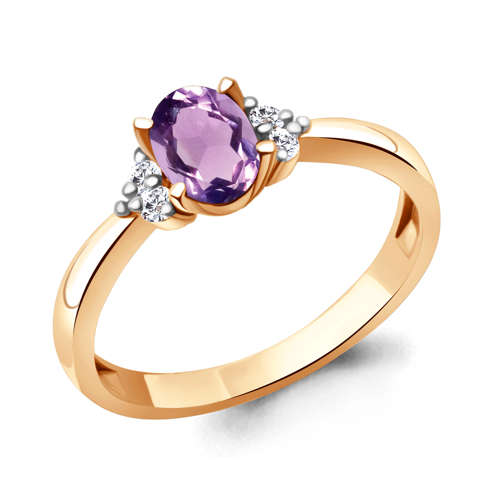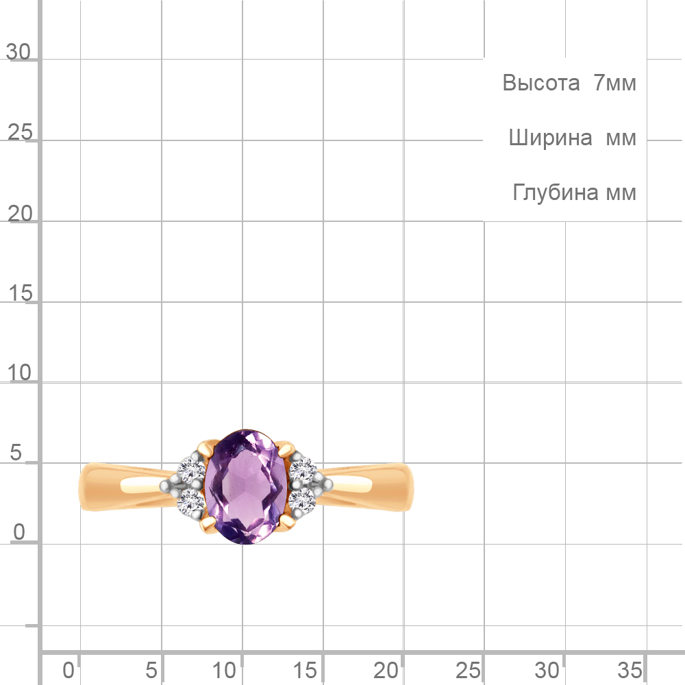 6523604А Кольцо из Серебра с аметистом, фианитами