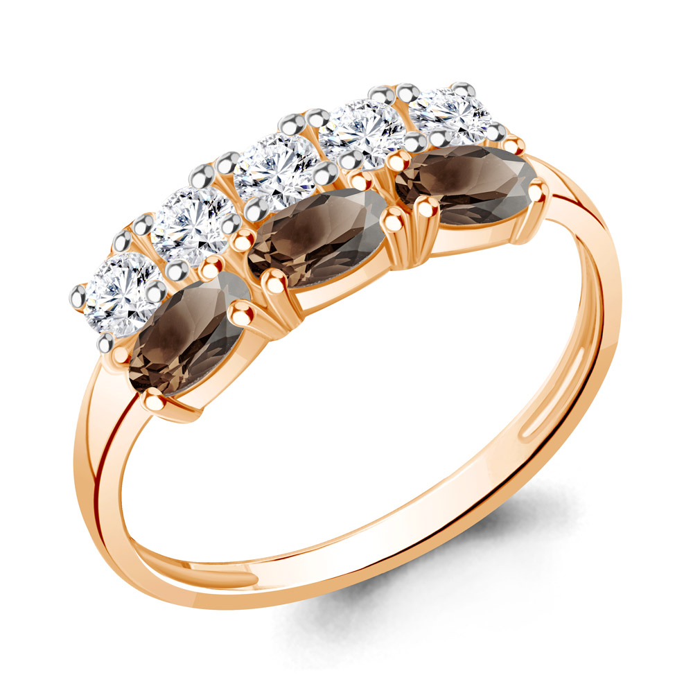 6535501 Кольцо из Серебра с кварцами дымчатыми, фианитами
