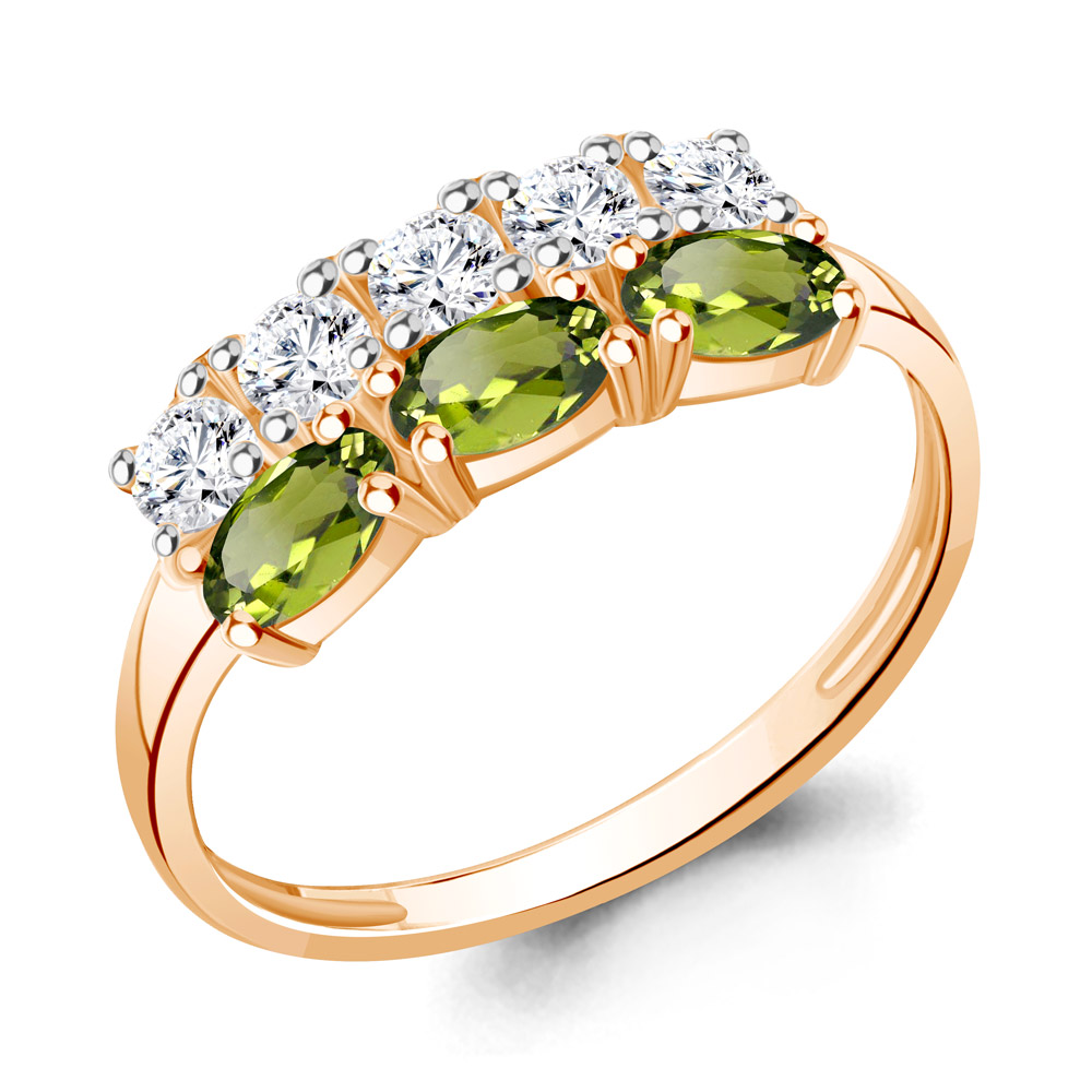 6535507 Кольцо из Серебра с фианитами, хризолитами