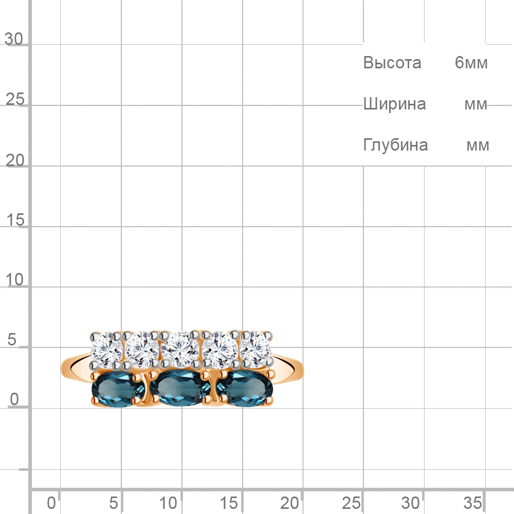 6535508А Кольцо из Серебра с топазами лондон блю, фианитами