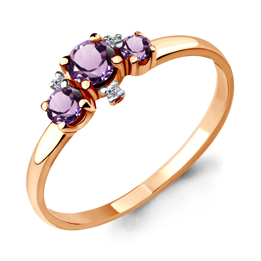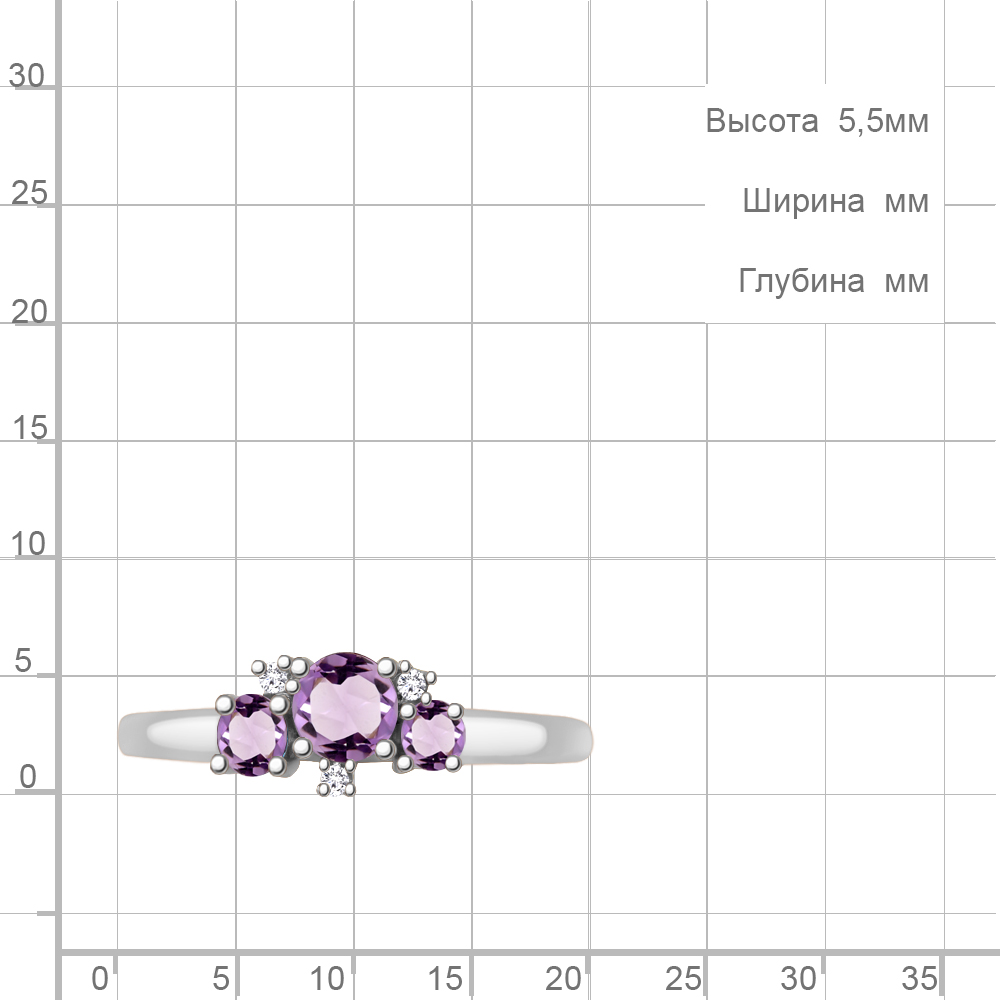 6535604 Кольцо из Серебра с аметистами, фианитами
