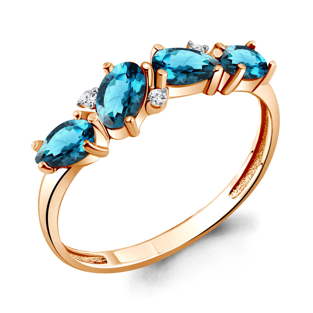 6535808А Кольцо из Серебра с топазами лондон блю, фианитами