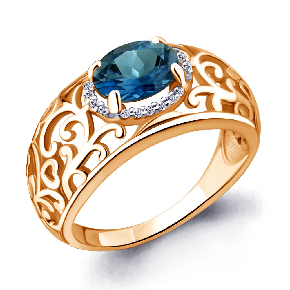6543408А Кольцо из Серебра с топазом лондон блю, фианитами