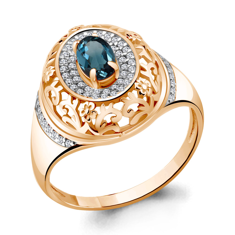 6545508А Кольцо из Серебра с топазом лондон блю, фианитами