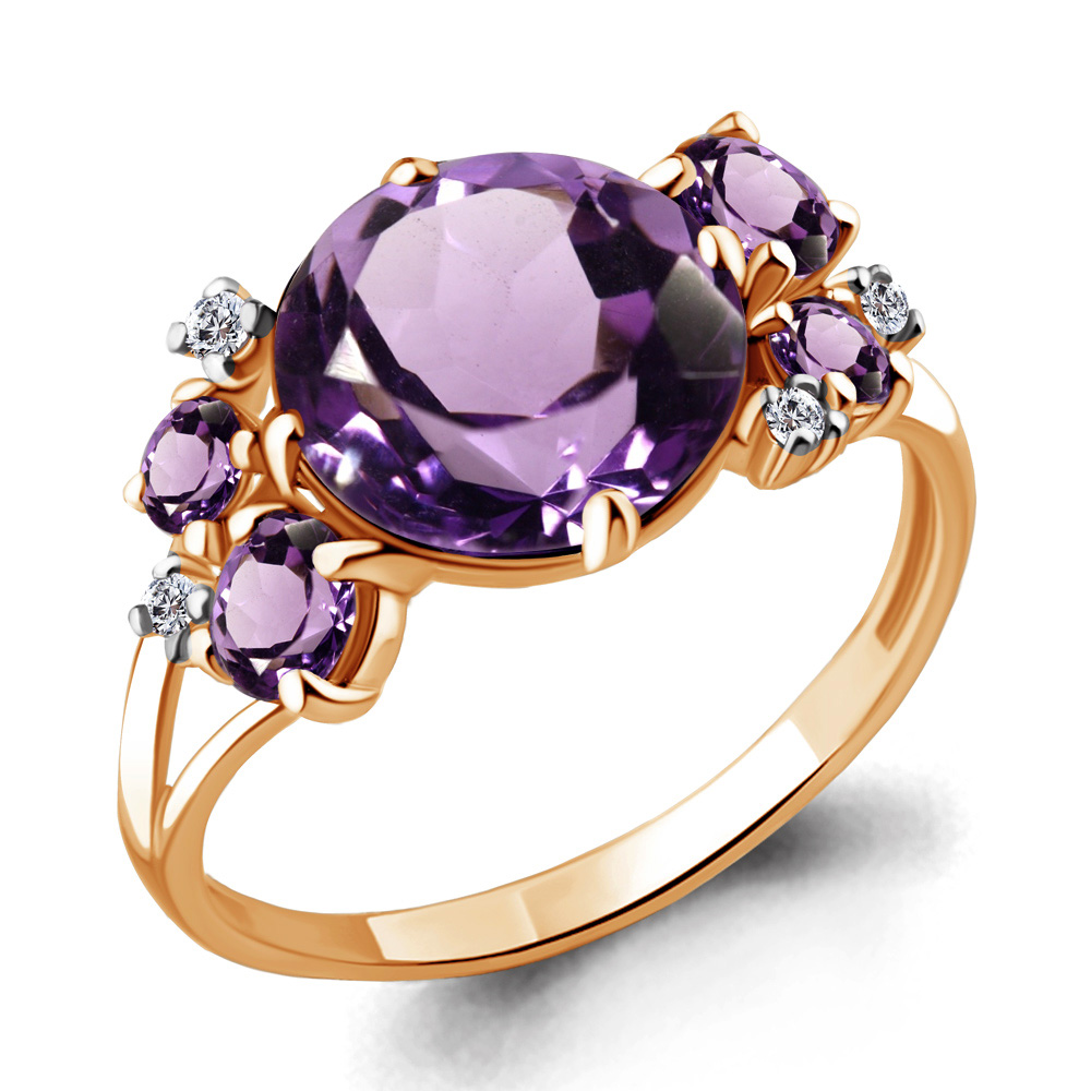 6546504А Кольцо из Серебра с аметистами, фианитами из коллекции "Фруктовый лёд"